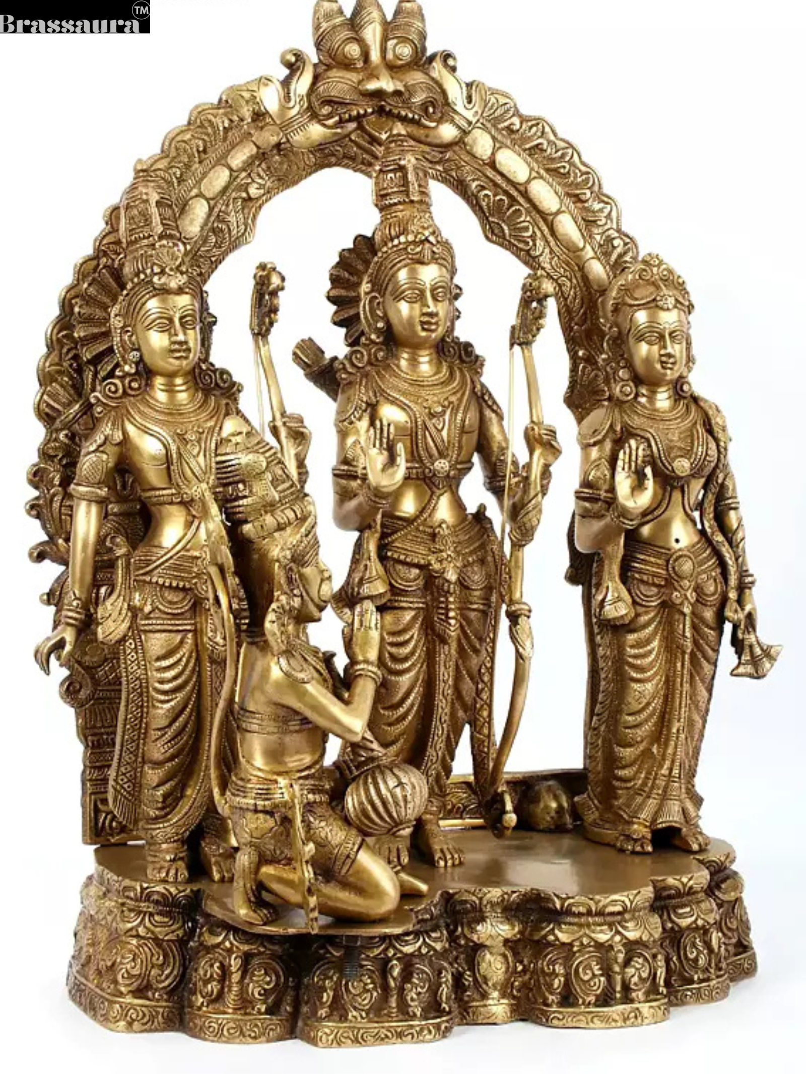 Brassaura™ 25" Ayodhya Rama Darbar Brass Statue | Height 25.59 Inches | Weight 35 Kg | Handmade Brass Idol