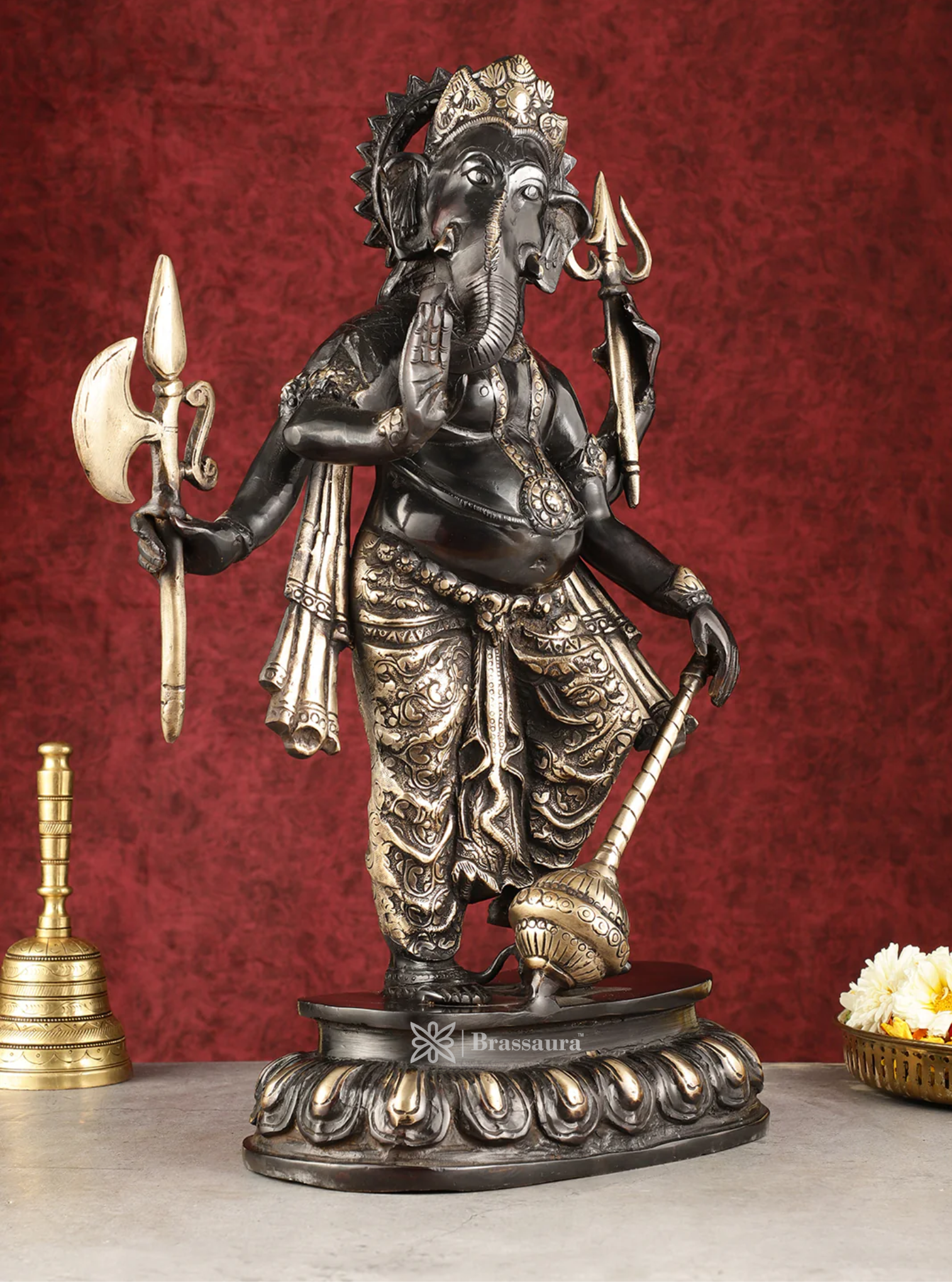 Brassaura™ Pure Brass Standing Lord Ganesha – Black Finish | Height 18 Inches, Weight 14 Kgs