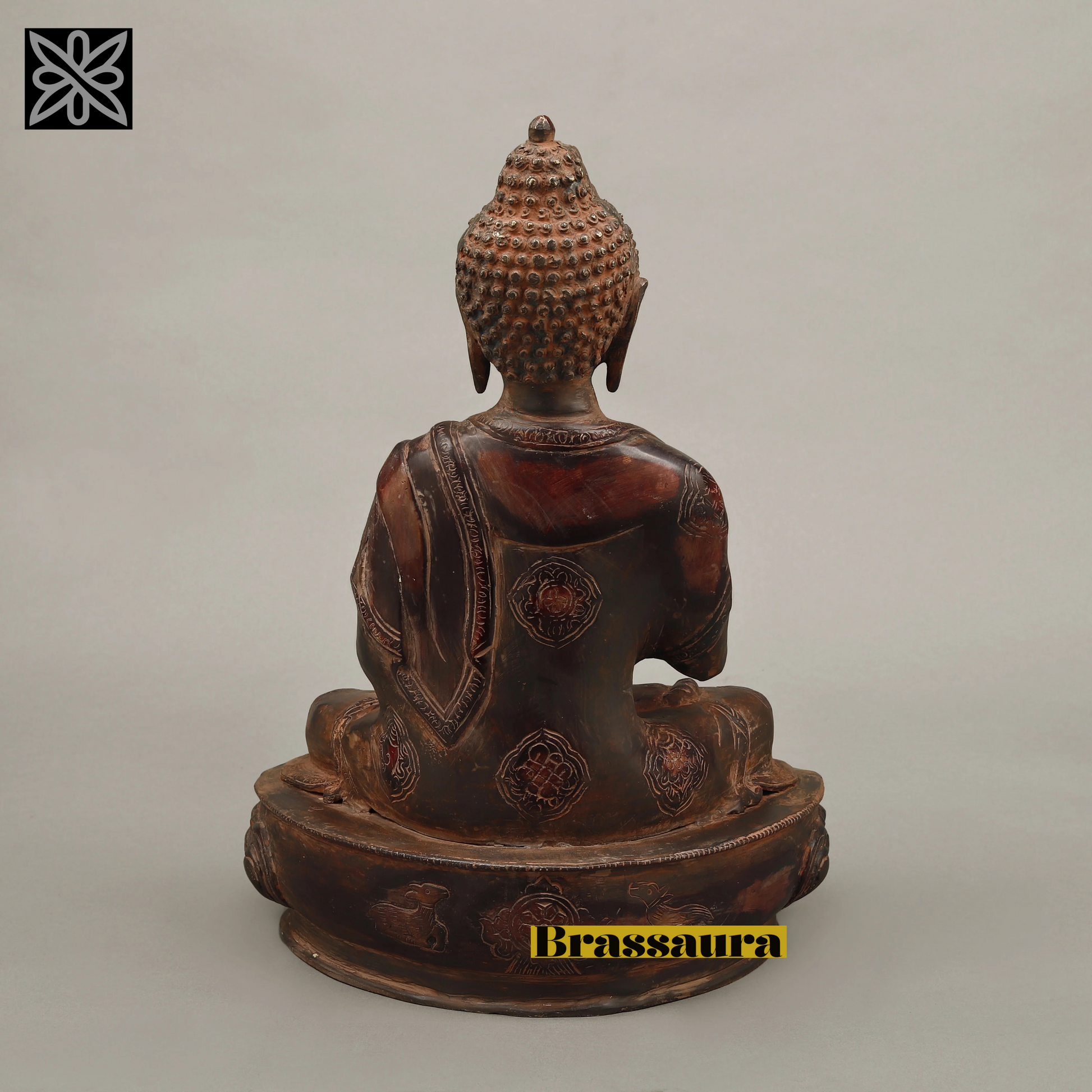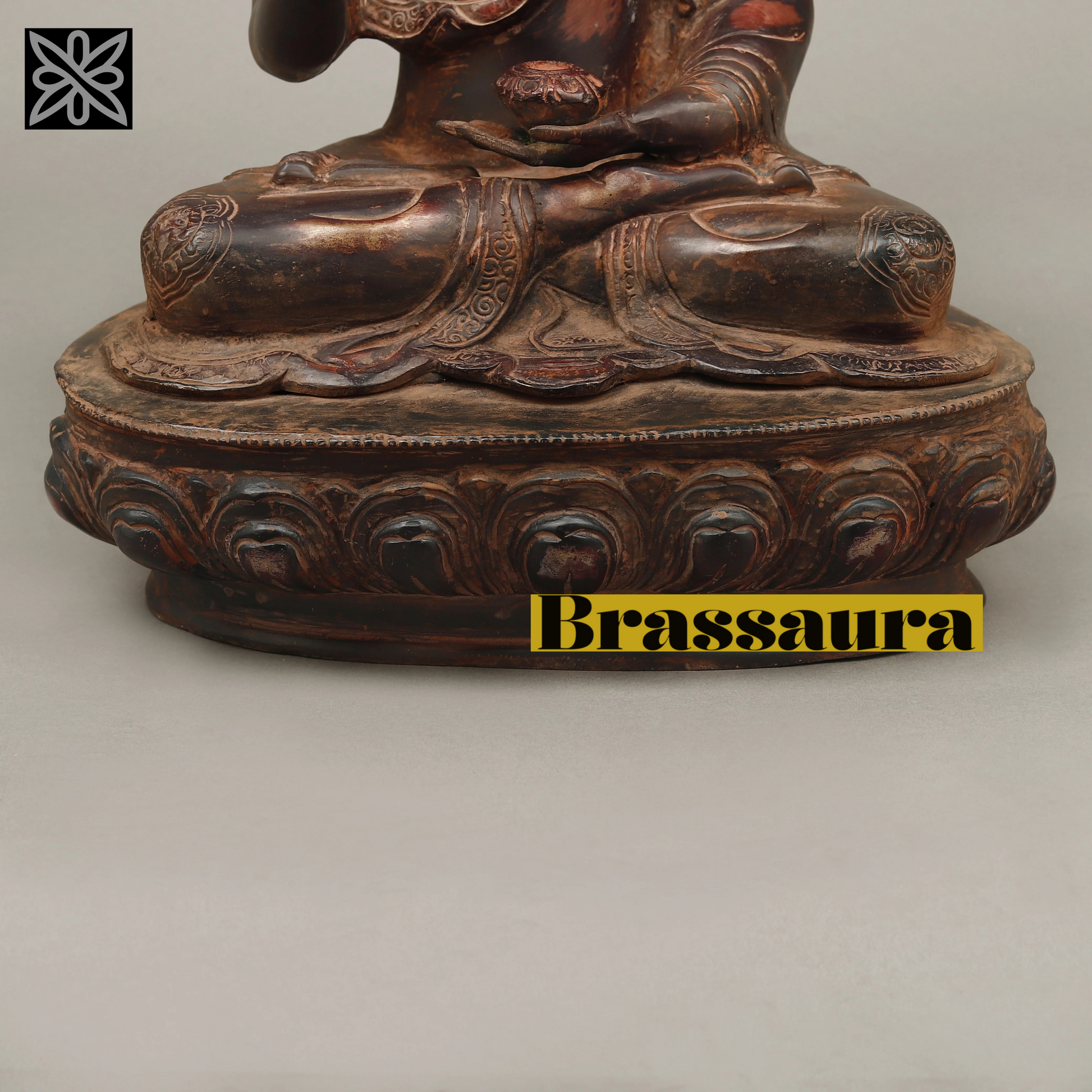 Brassaura™ Brass Buddha Statue in Blessing Posture – Height 17 Inches | Weight 9.88 Kgs | Copper Rustic Finish
