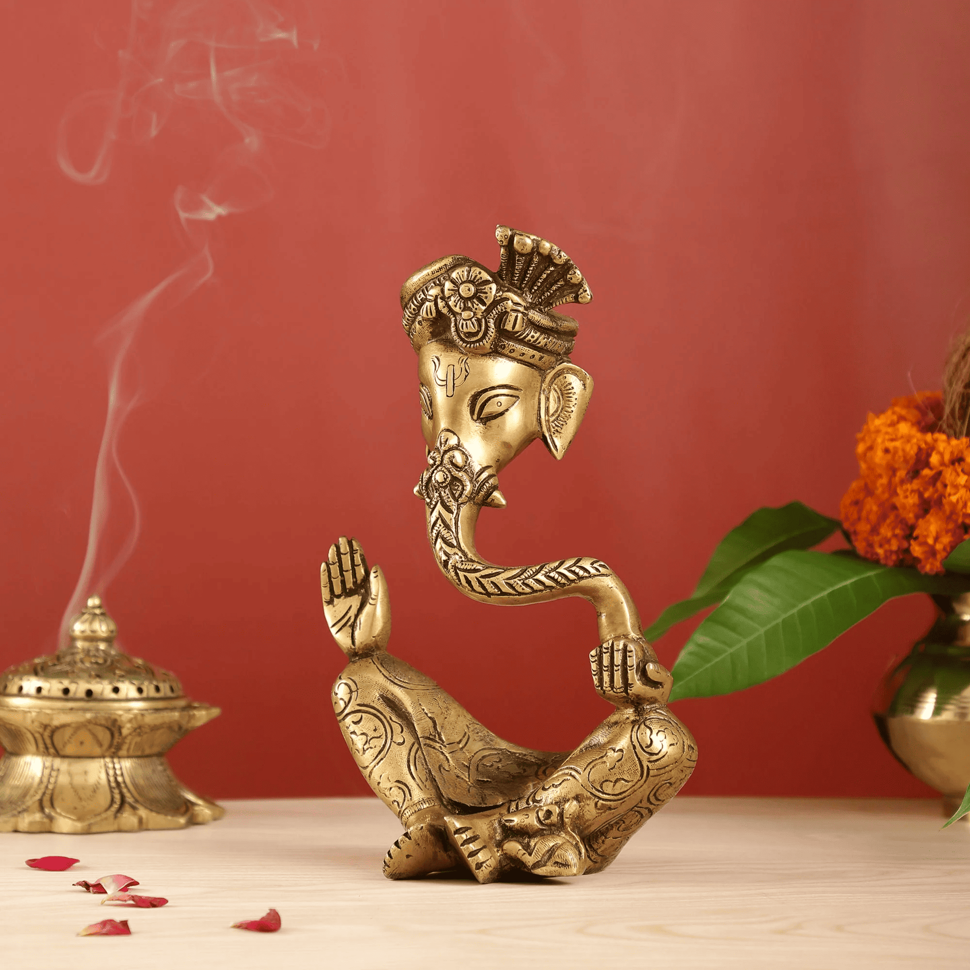 Brassaura™ Brass Ganesha Idol with Natural Brass Finish | Height 10.5 Inches | Weight 2.8 Kgs