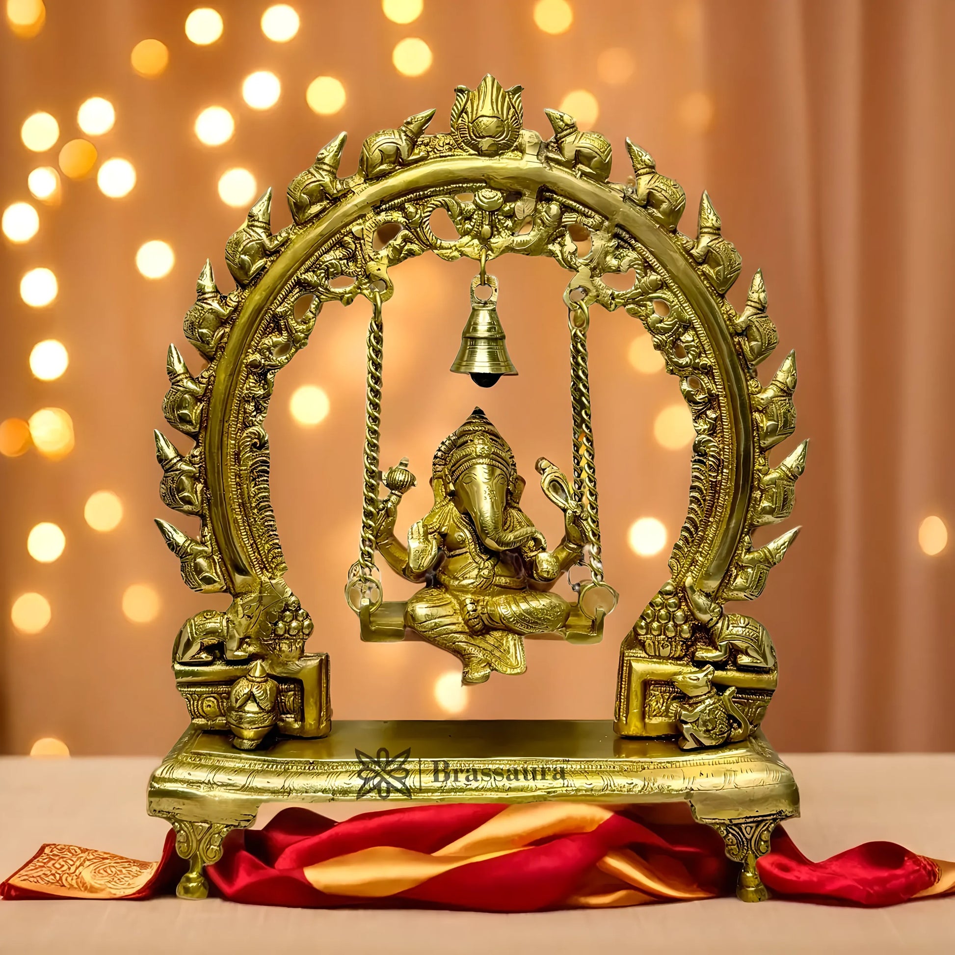 Brassaura™ Brass Ganesha Jhula Murti – Height 14.6 inches & Weight 5.2 kgs | Ganpati Swing Idol for Pooja & Home Décor