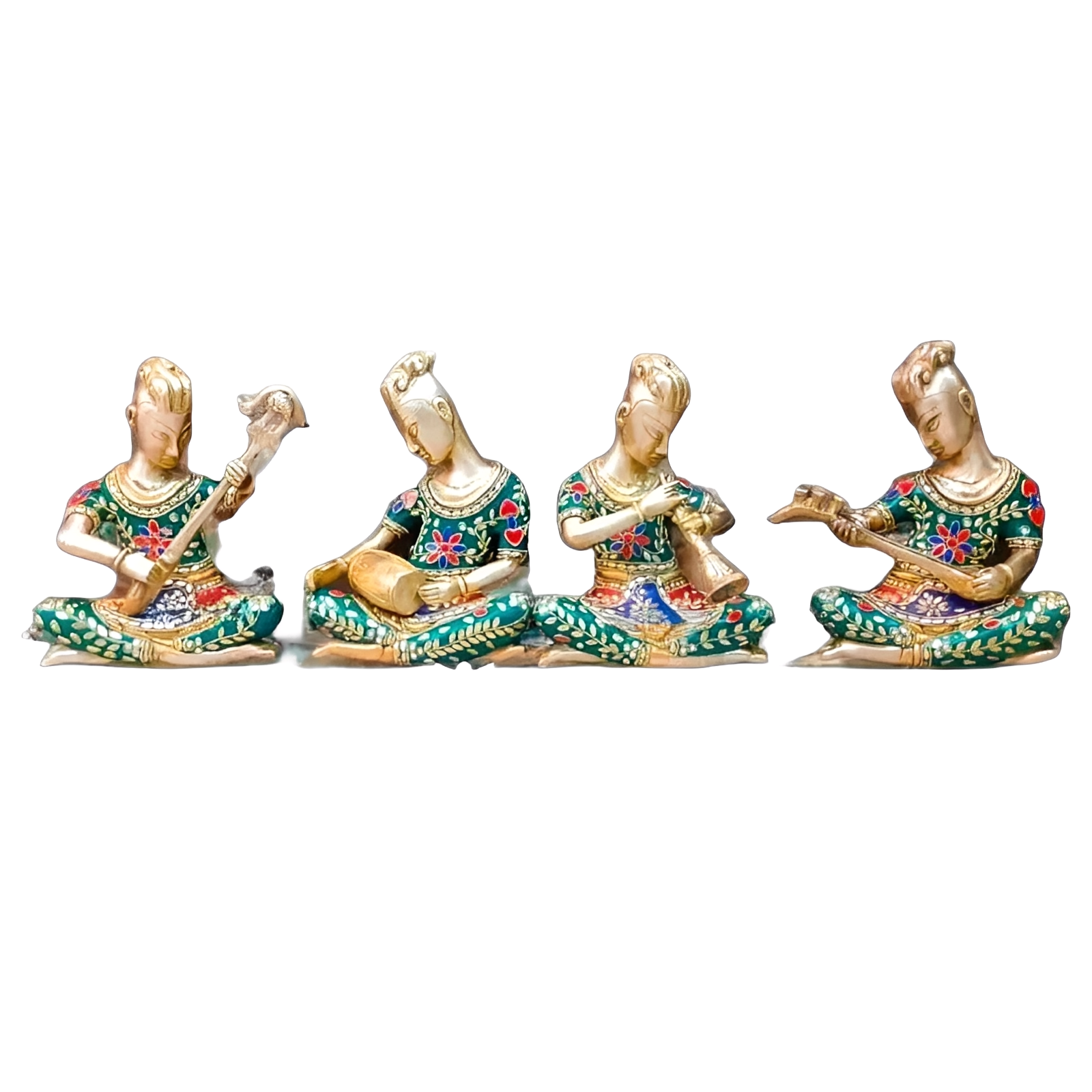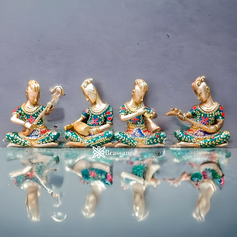 Brassaura™ Brass Tribal Musicians Set with Stonework – Height 6.3 Inches & Total Weight 6 Kgs
