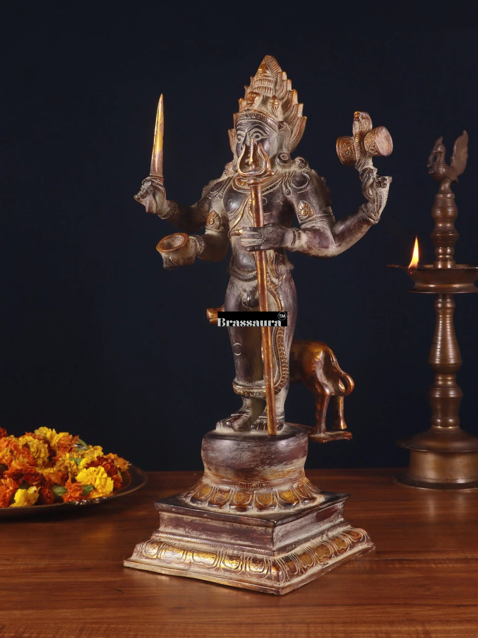 Brassaura™ Superfine Brass Kala Bhairava Statue with Vahana Dog – Height 17.5 inches | Weight 9 kgs