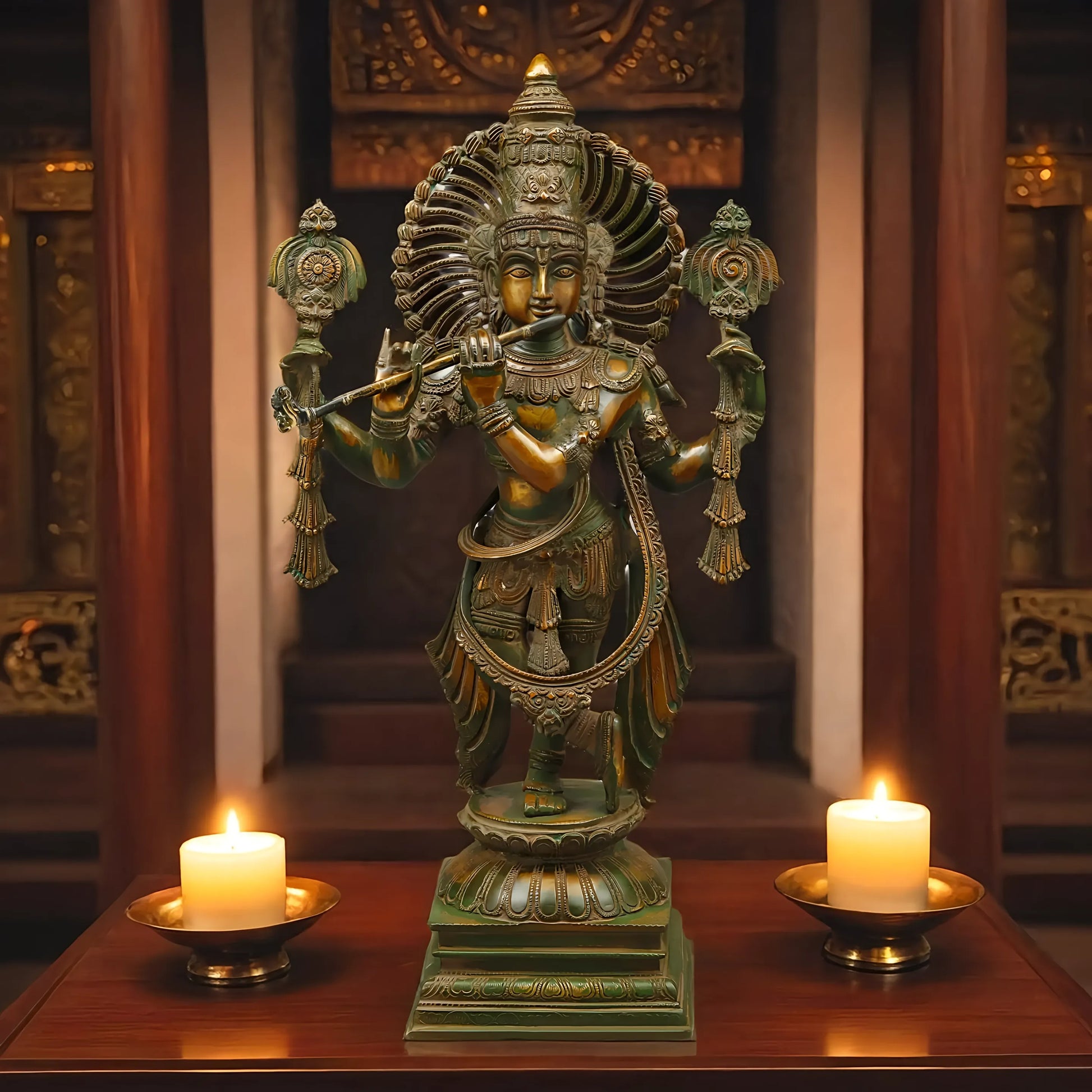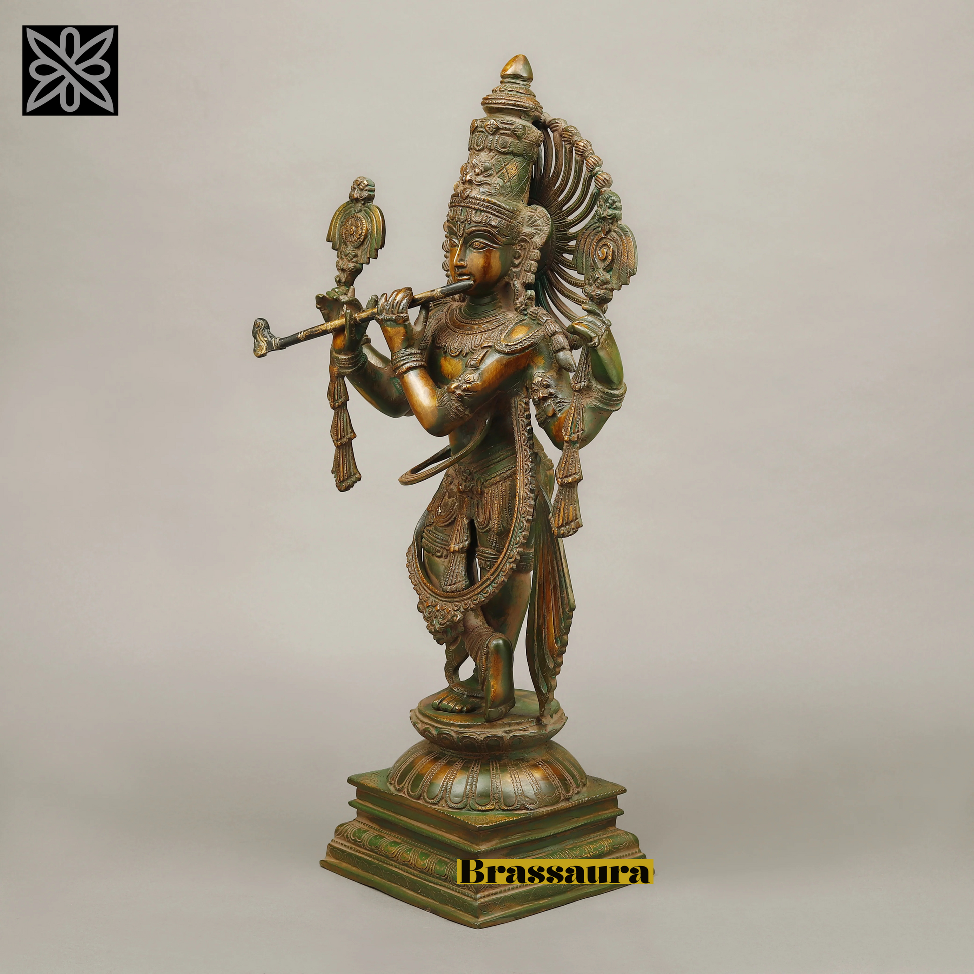 BrassAura™ Brass Krishna Playing Flute – Multi-Color Finish | Height 24 Inch | Weight 13.05 Kg