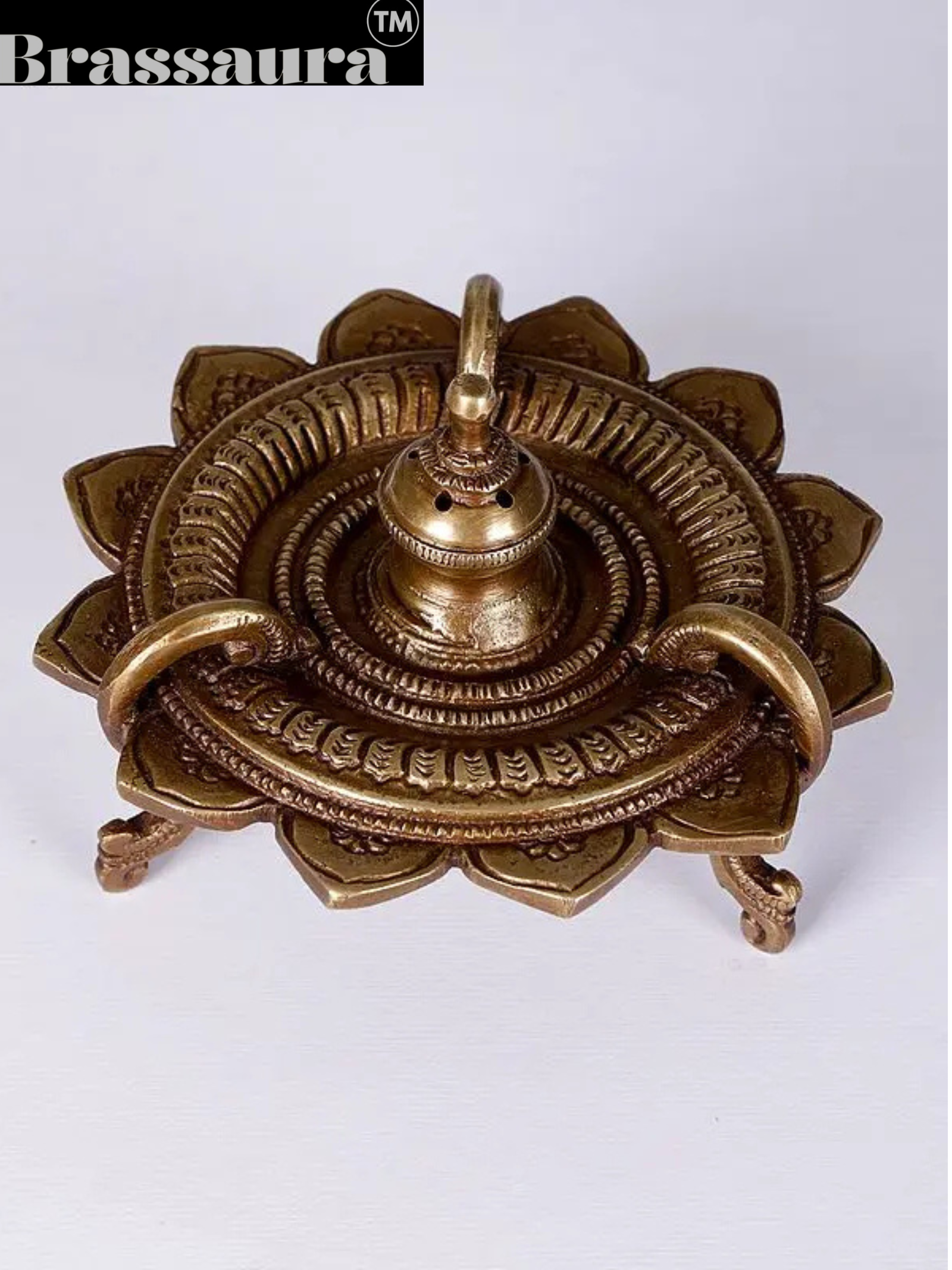 Brassaura™ Lotus Design Brass Dhoop Dani – Height 3.15 inches | Weight 0.55 kgs