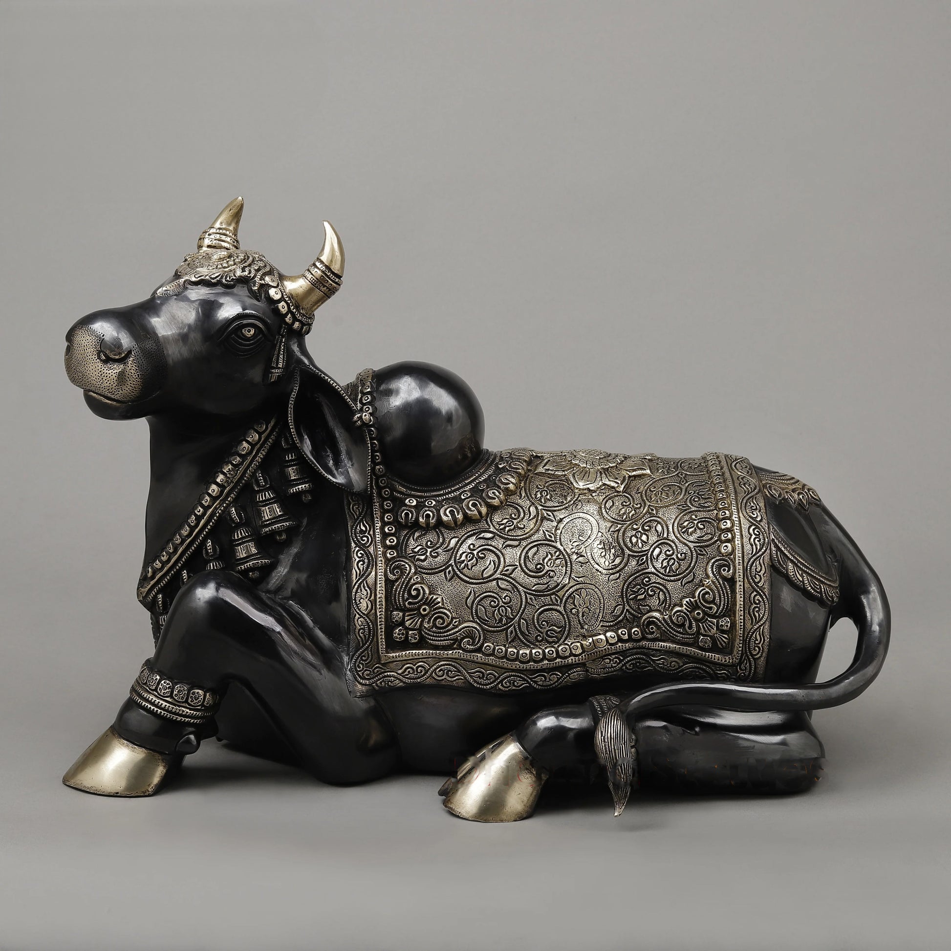 Brassaura™ Brass Nandi Statue | 14 Inches Height | 19.29 Kgs Weight | Black Finish with Golden Accents
