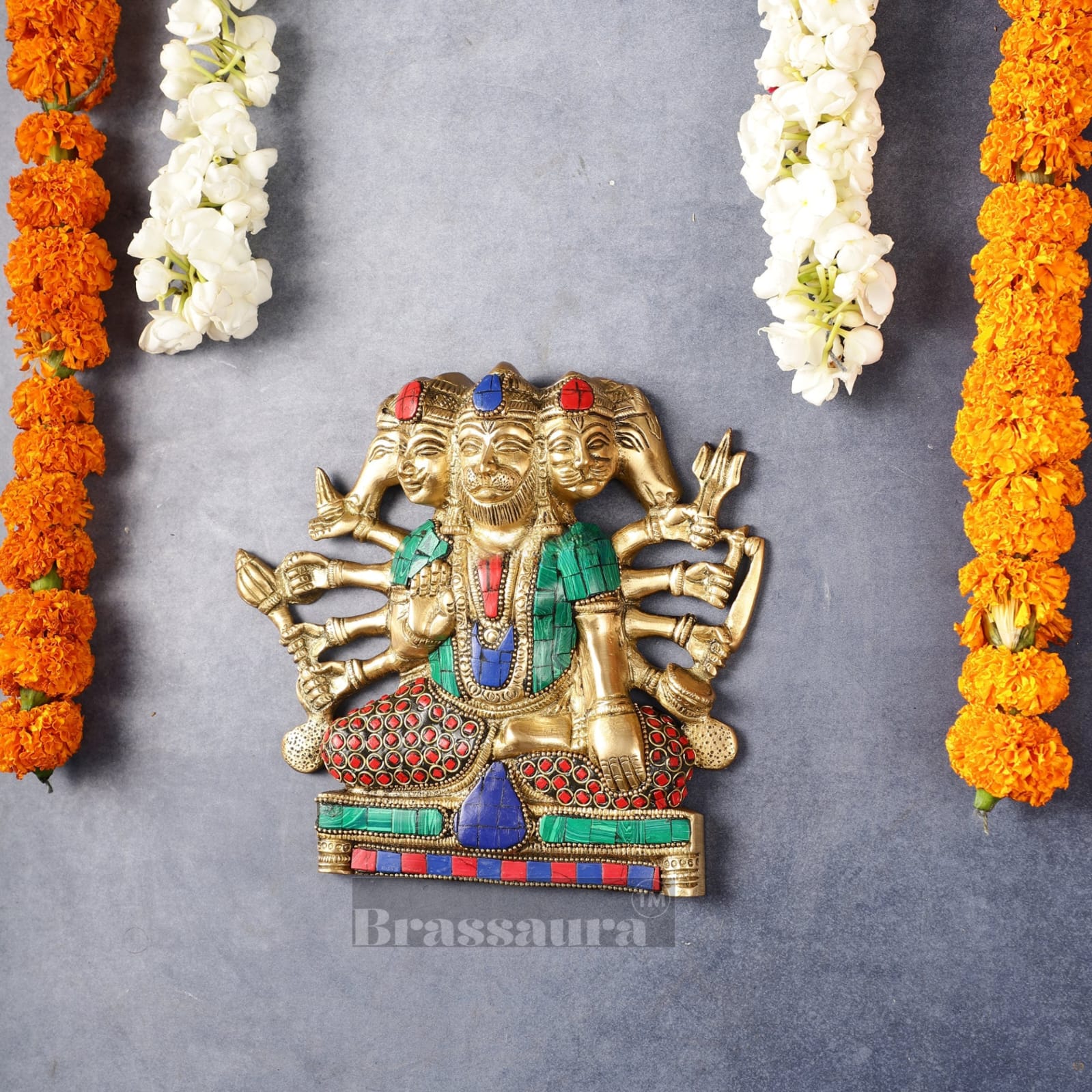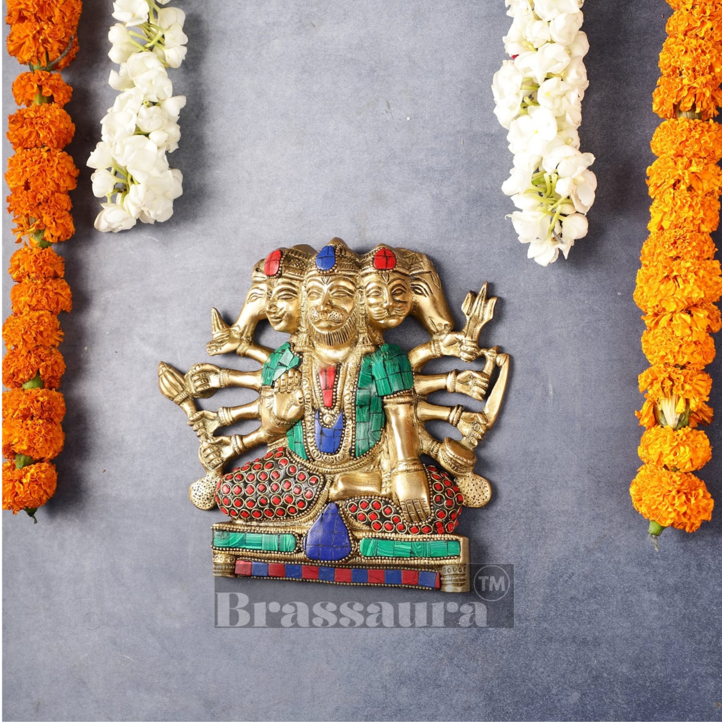 Brassaura™ Brass Panchmukhi Hanuman Wall Hanging – Height 8 Inches & Weight 2 Kgs | Handcrafted for Protection