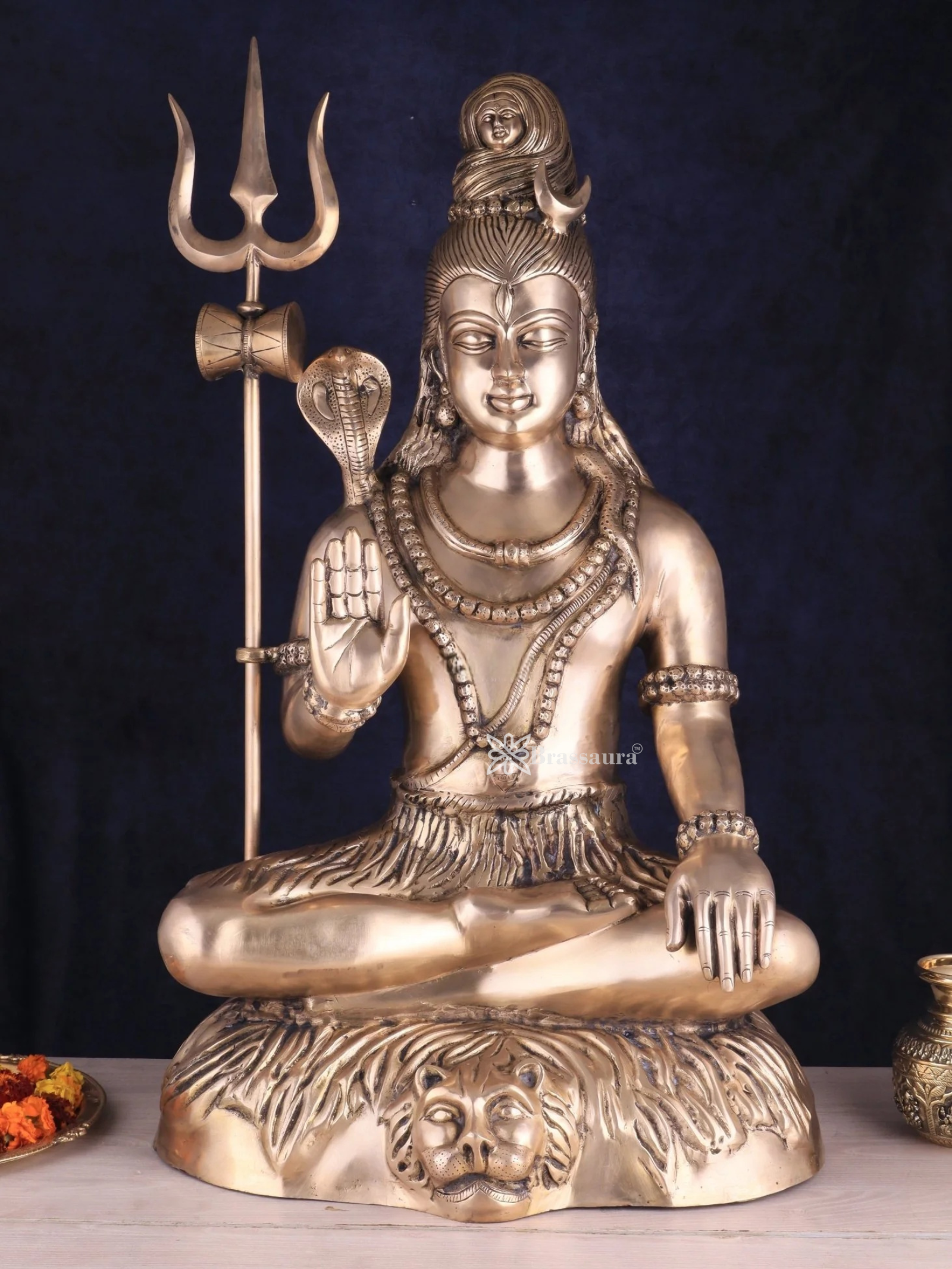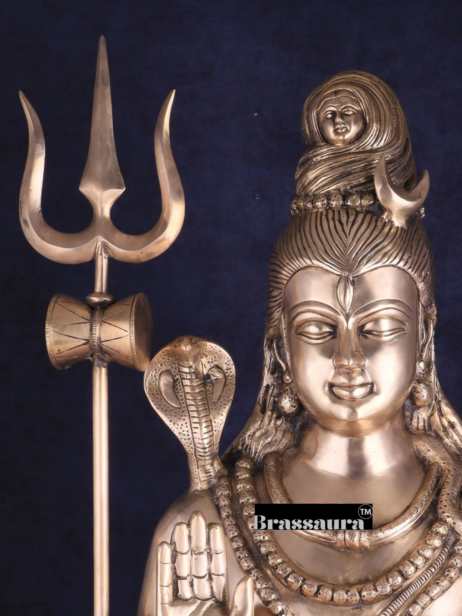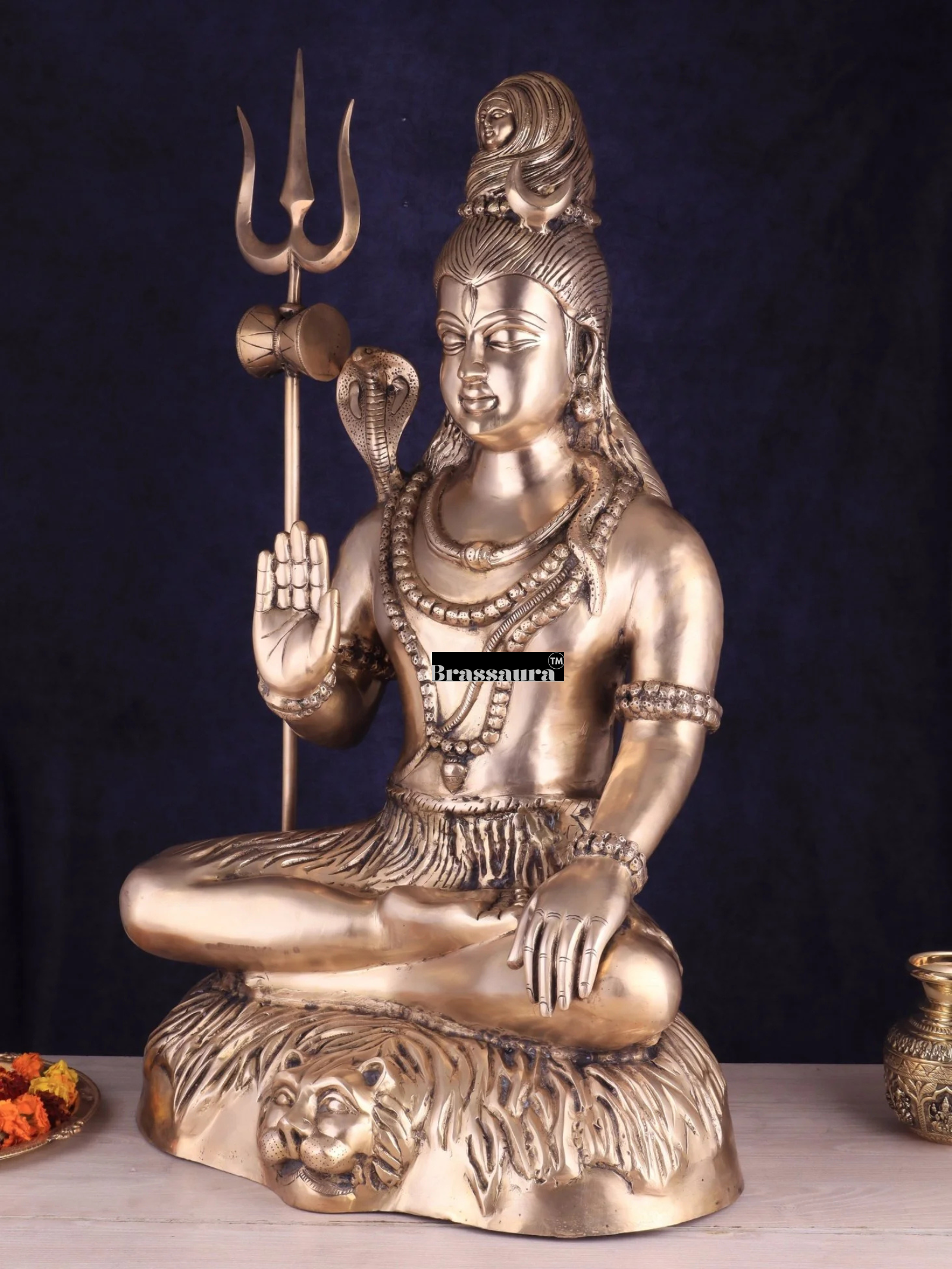 Brassaura™ Brass Shiva Idol – Height 35 Inches & Weight 42 Kgs | Meditation Room Accent
