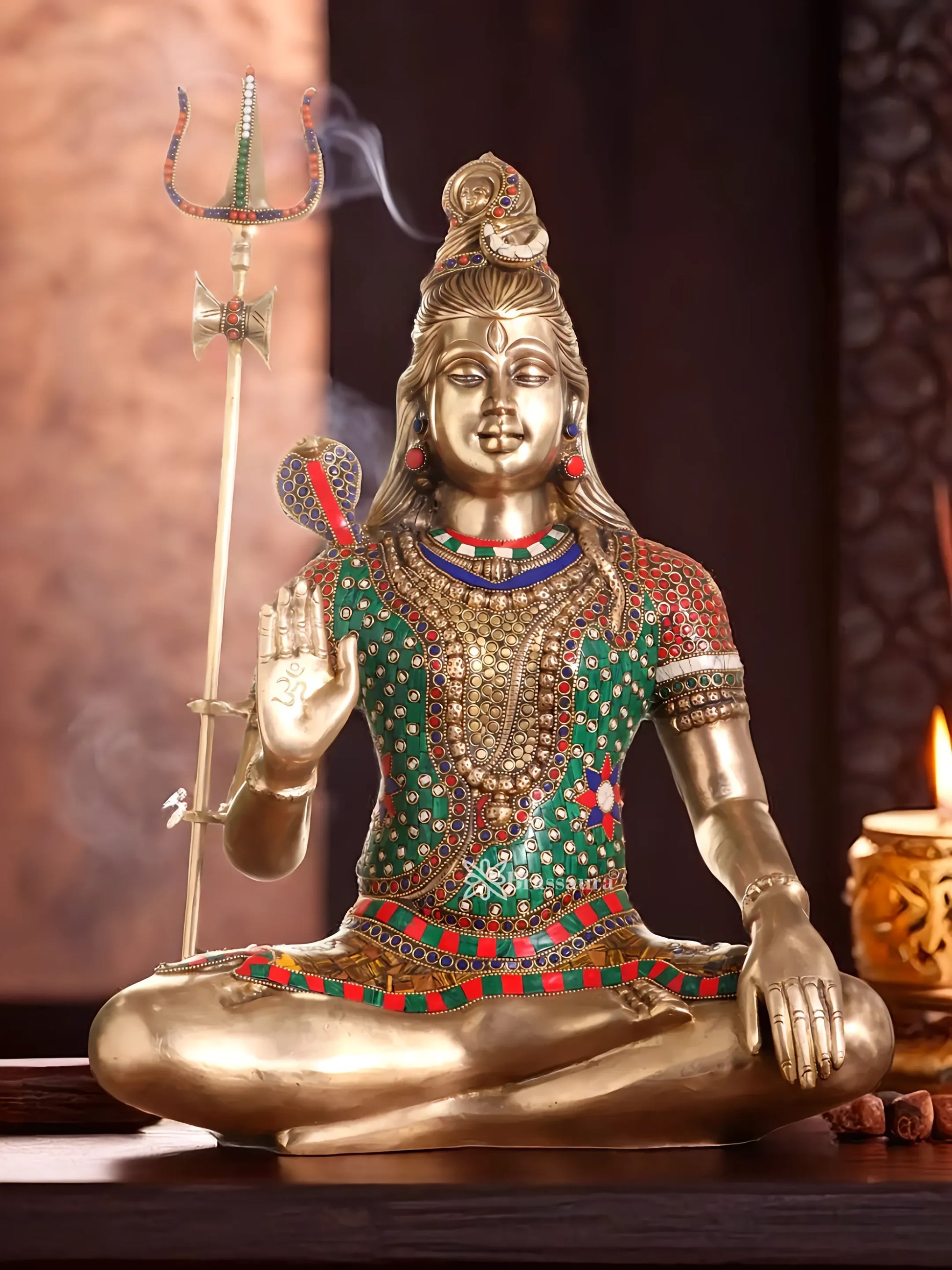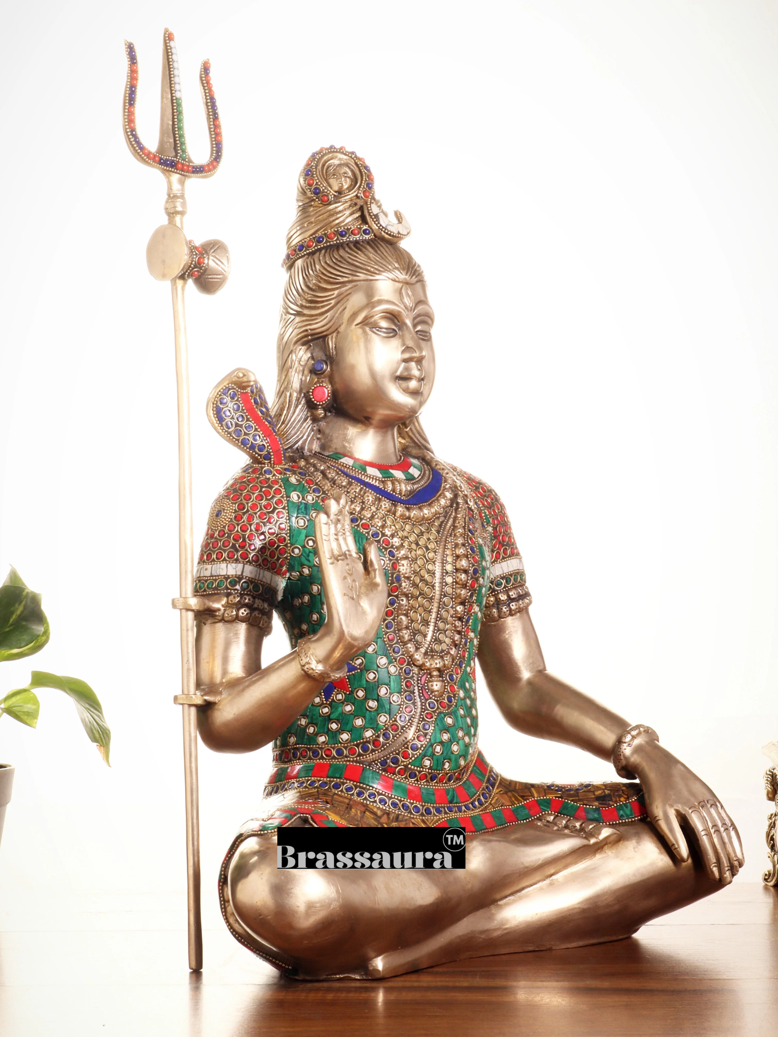 Brassaura™ Brass Gem Stone Work Shiva Idol – Height 20 Inches & Weight 12 Kgs | Spiritual Home Décor