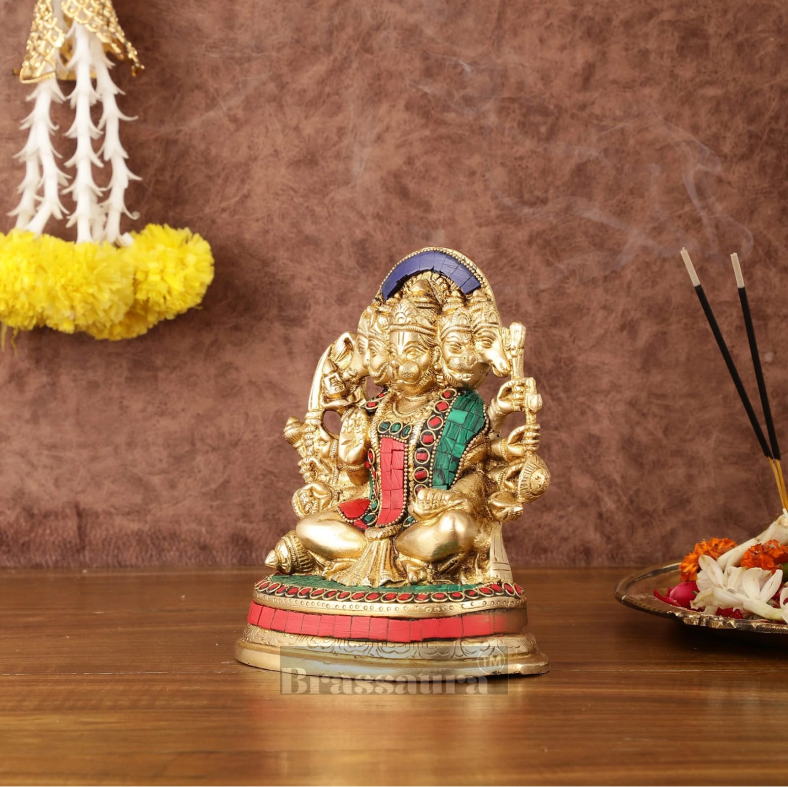 Brassaura™ Superfine Brass Panchmukhi Hanuman Murti – Height 6.5 Inches & Weight 2 Kgs | Handcrafted Miniature Idol