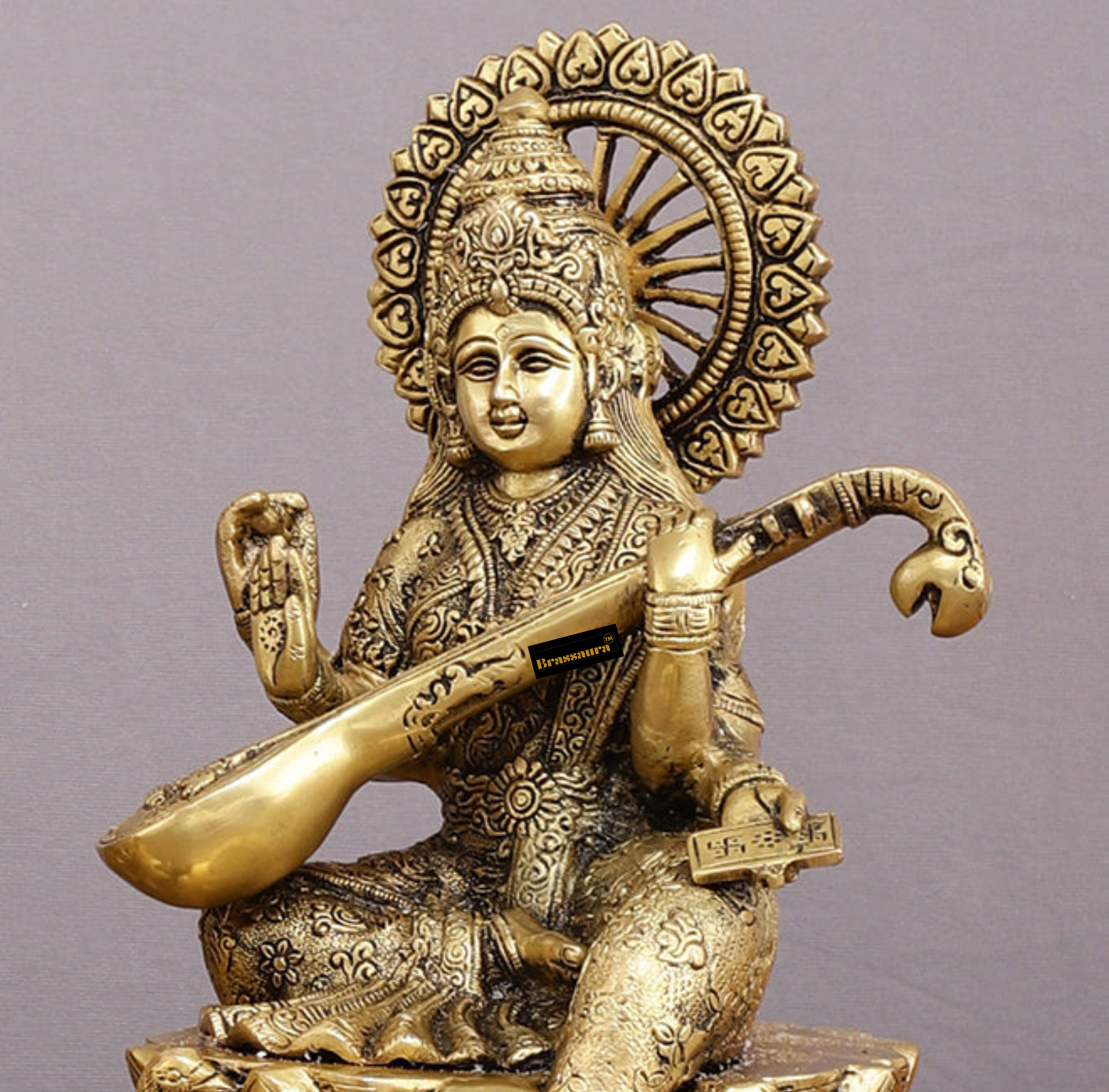 Brassaura™ Pure Brass Ganesh Lakshmi Saraswati Set – 11" Height, 19 kg – Handcrafted Trio for Prosperity & Wisdom
