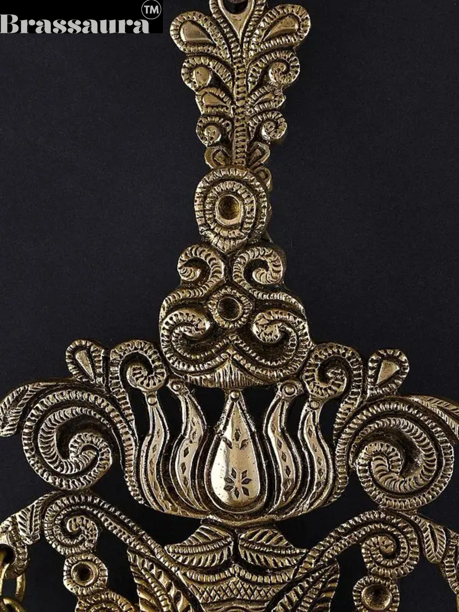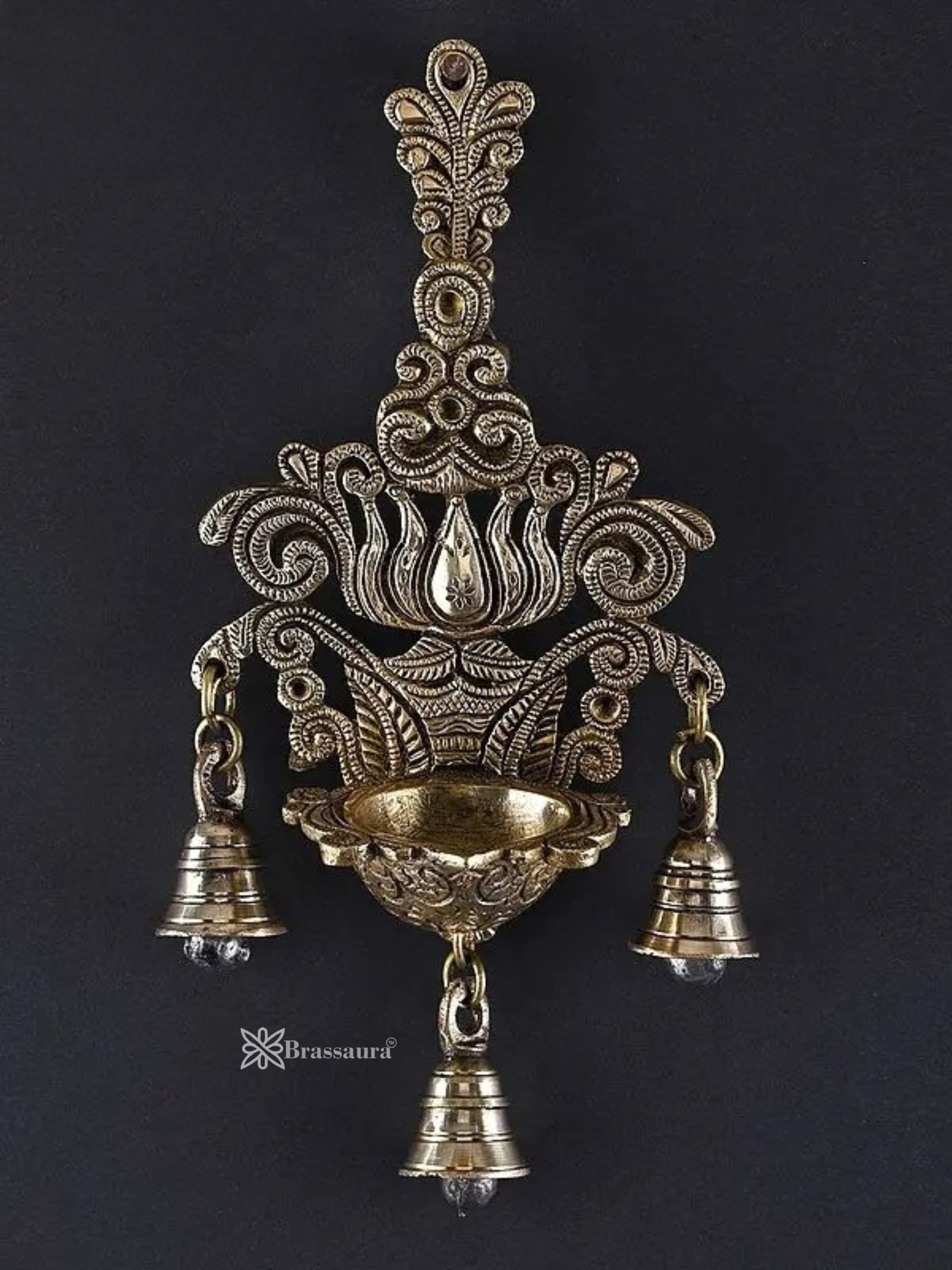 Brassaura™ Brass Lotus Design Wall Hanging Lamp with Bells – Height 10.43 inches | Weight 0.88 kgs