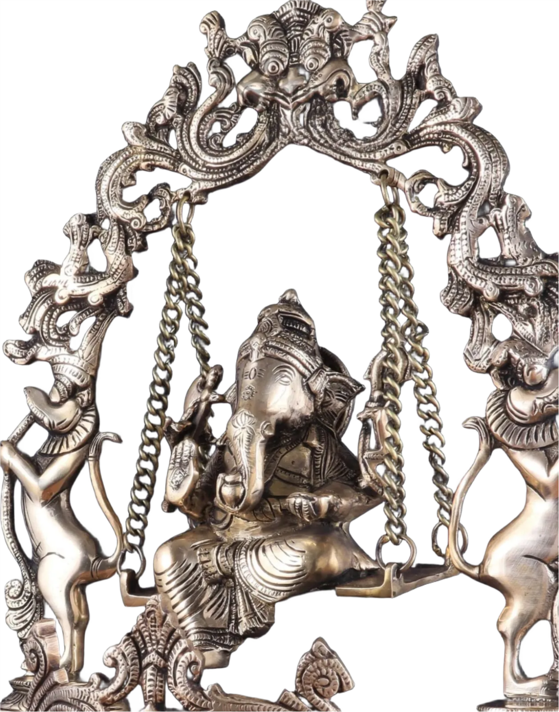 Brassaura™ Lord Ganesha on Swing Brass Urli – 9 kgs, 20 Inches Height – Auspicious Home Decor & Gifting Piece