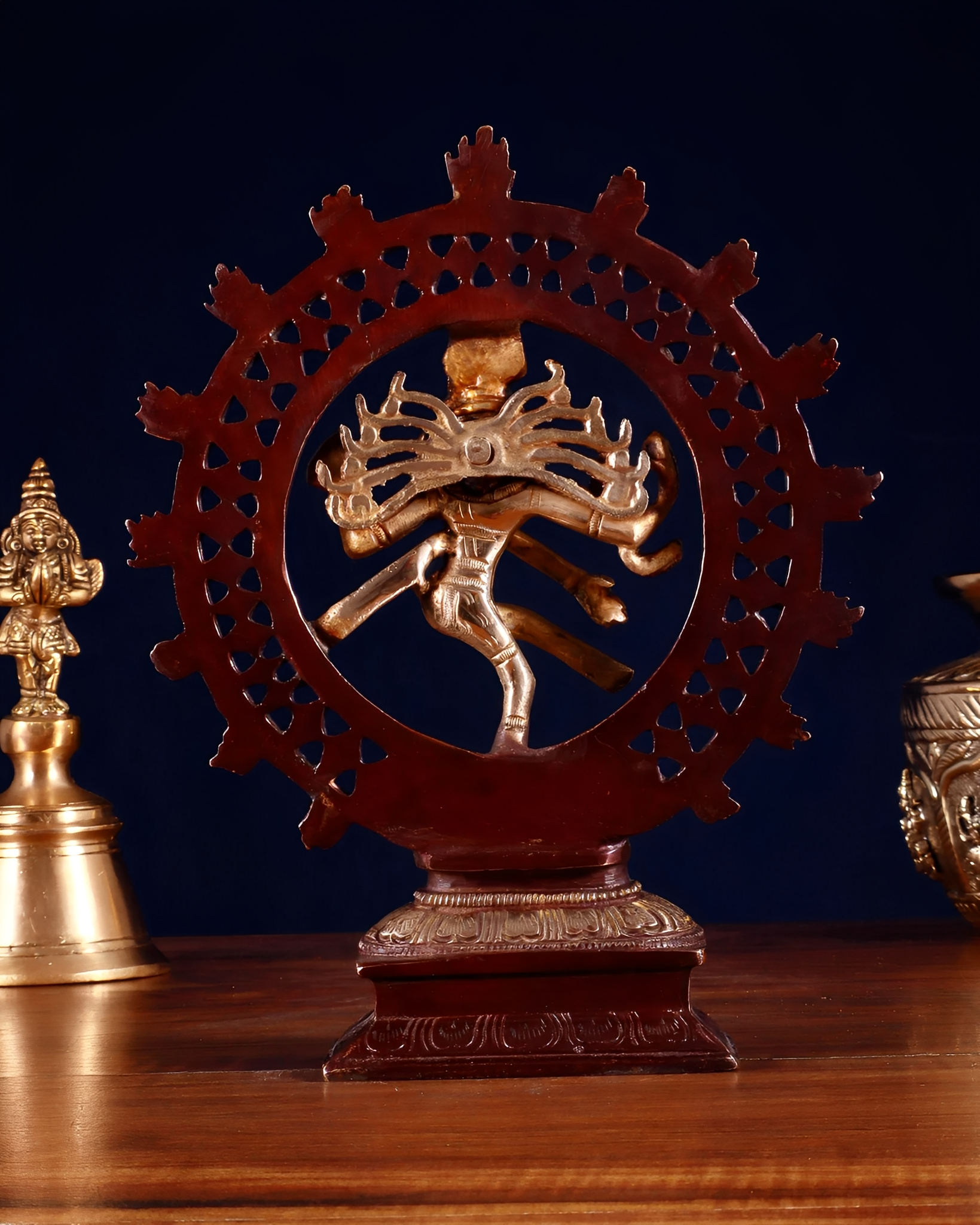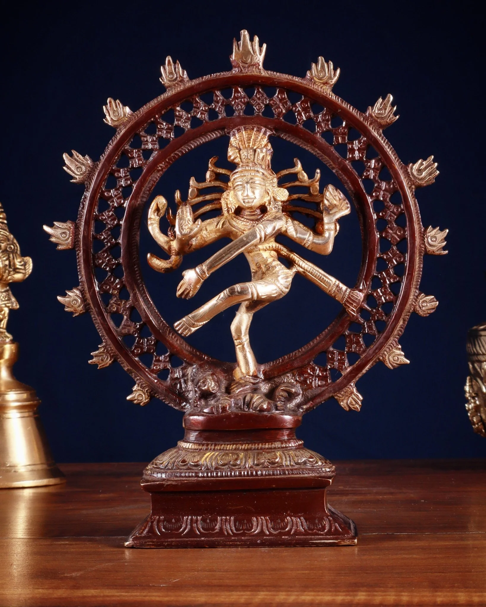 Brassaura™ Brass Lord Shiva Nataraja Statue with Netted Ring | Dual Tone Handcrafted Idol | Weight 1.4 Kgs | Height 9.3 Inches