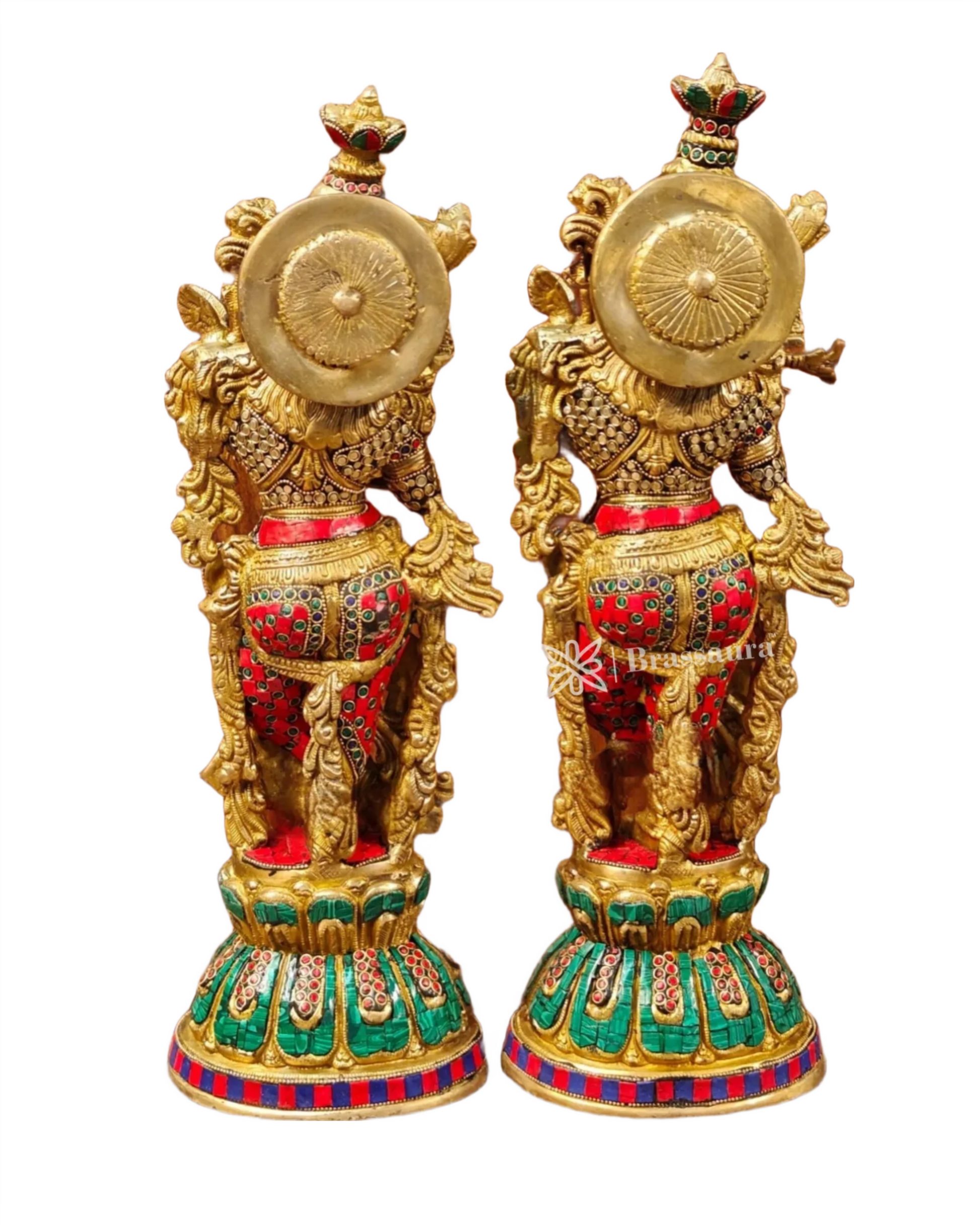 Brassaura™ Handcrafted Radha Krishna Statues – 21 Inch Height, 19 Kg Pair | Brass & Natural Stone Embellished