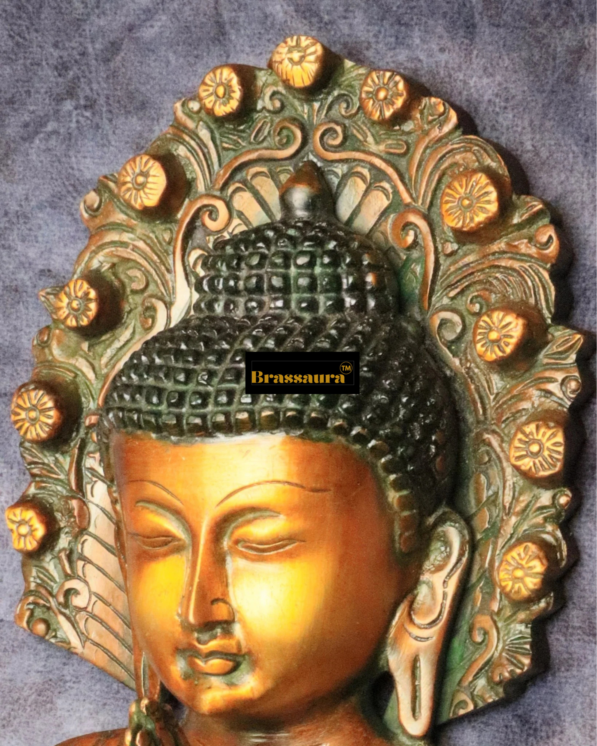 Brassaura™ Pure Brass Buddha Face Wall Hanging – Height 9.5 Inches, Weight 1.6 Kgs