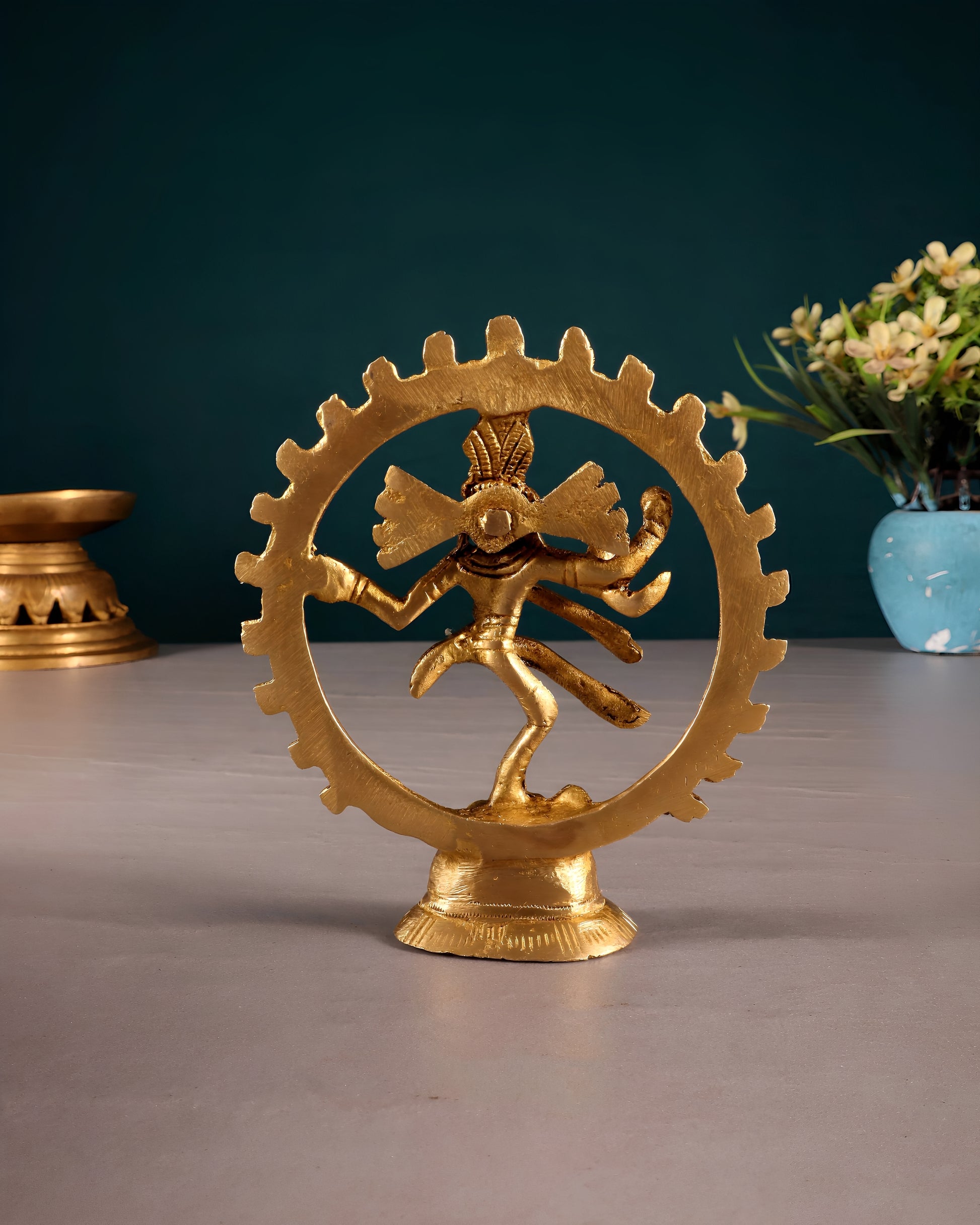 Brassaura™ Miniature Brass Lord Shiva Nataraja Idol | Handcrafted Spiritual Décor | Weight 116 g | Height 4 Inches