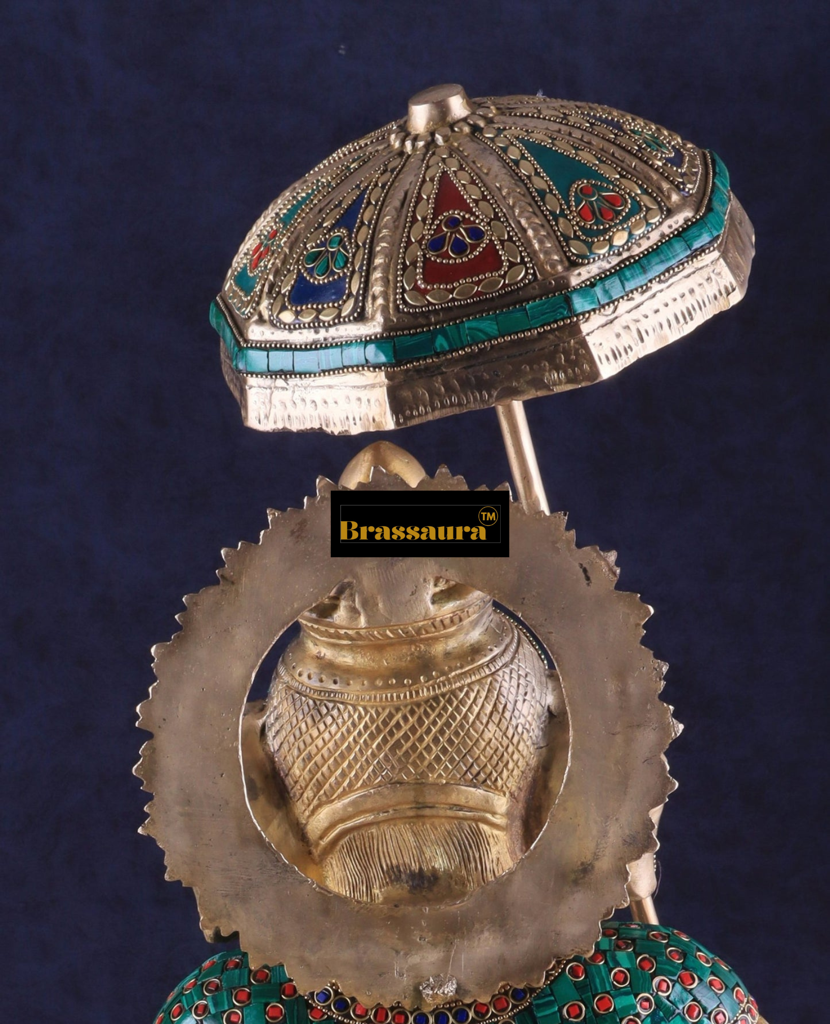 Brassaura™ Brass Lord Ganesha Holding Umbrella – 24" Height, 14 kg – Meenakari Stonework Masterpiece