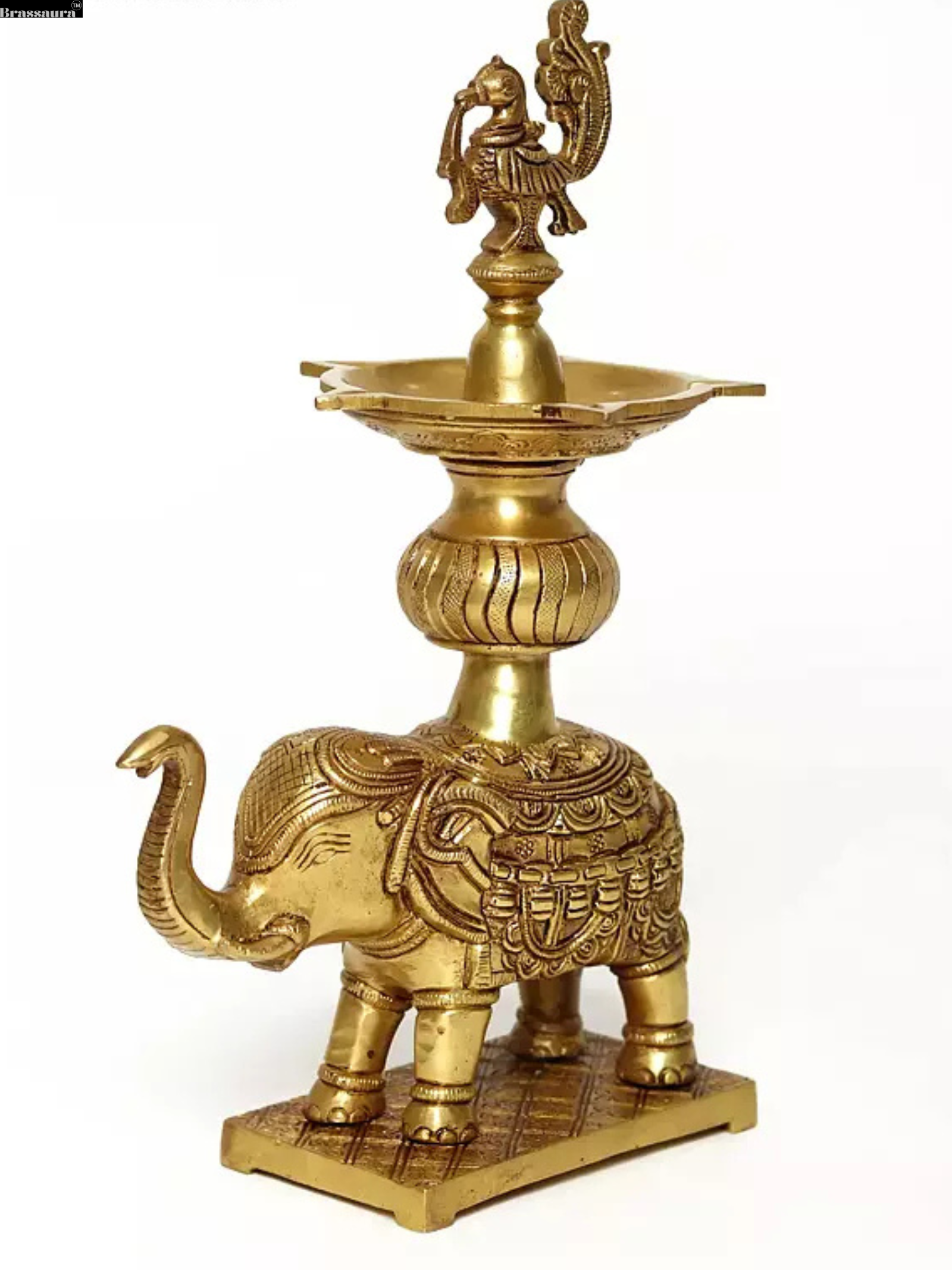 Features: Handcrafted, peacock motif, elephant stand, oil lamp