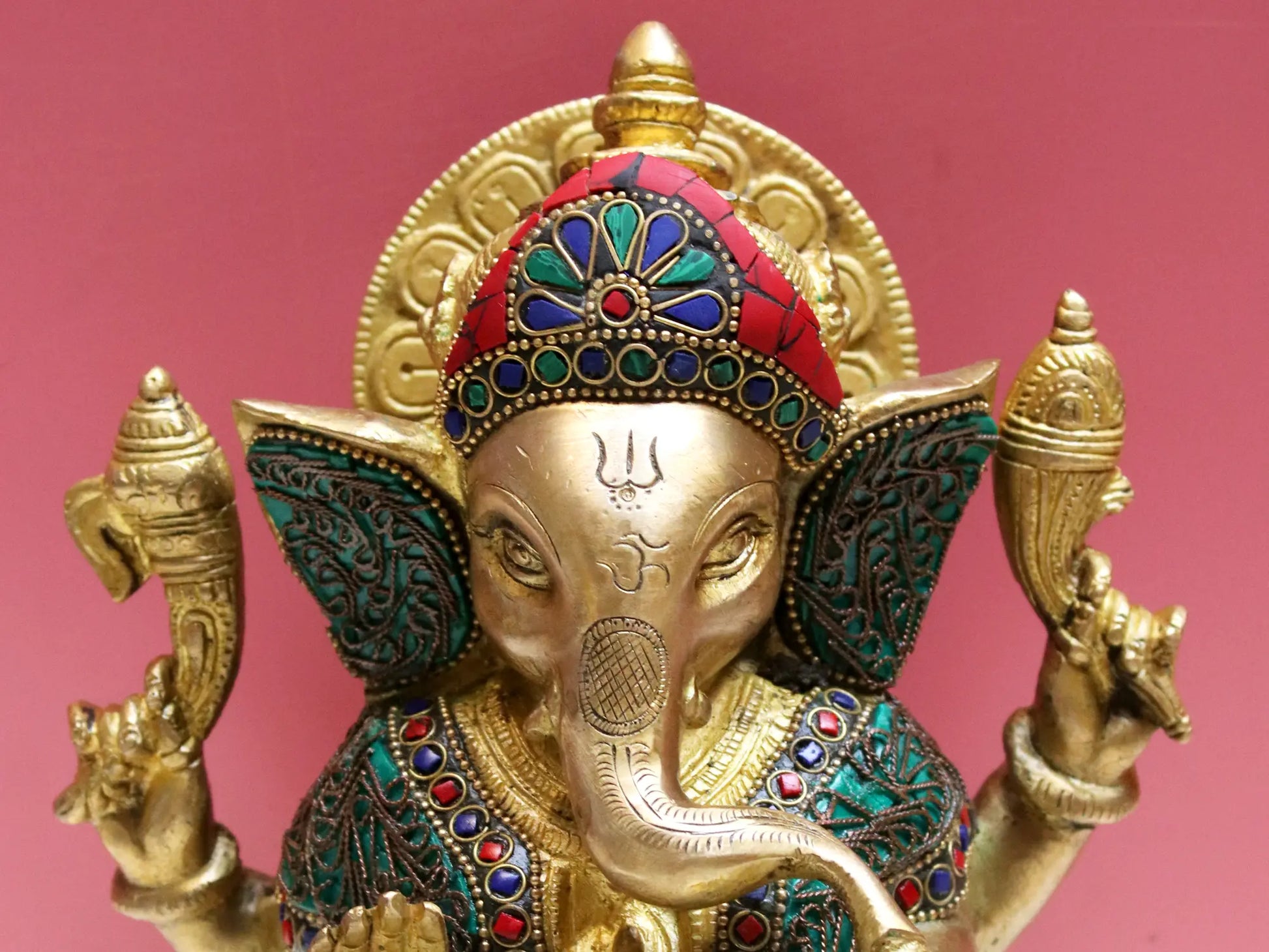 Brassaura™ Lord Ganesha with Intricate Inlay Work | Height 8.07 Inches & Weight 3.50 kgs