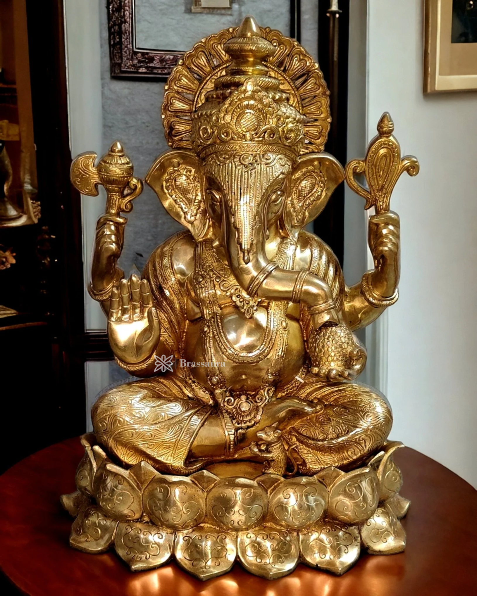 Brassaura™ 24-Inch Brass Kamal Ganesha Statue – Height 24 Inches, Weight 29 Kgs