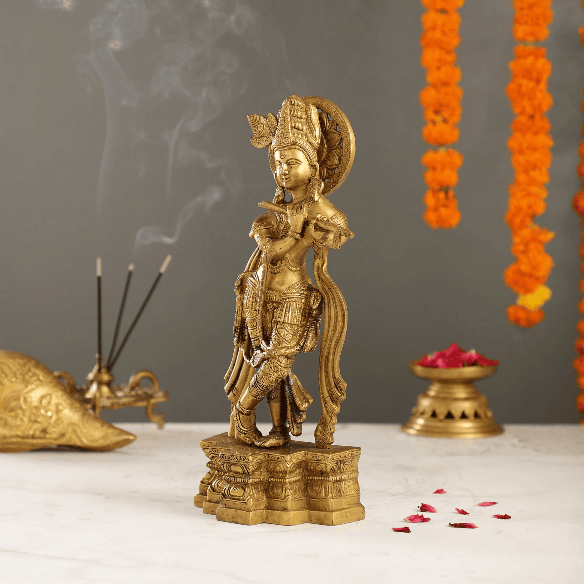 Brassaura™ Lord Krishna Brass Idol | Pure Brass | Height 12 Inches & Weight 2.5 Kgs