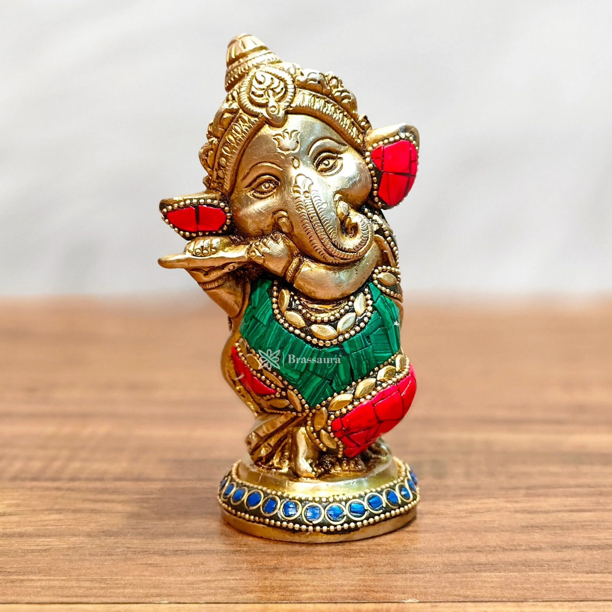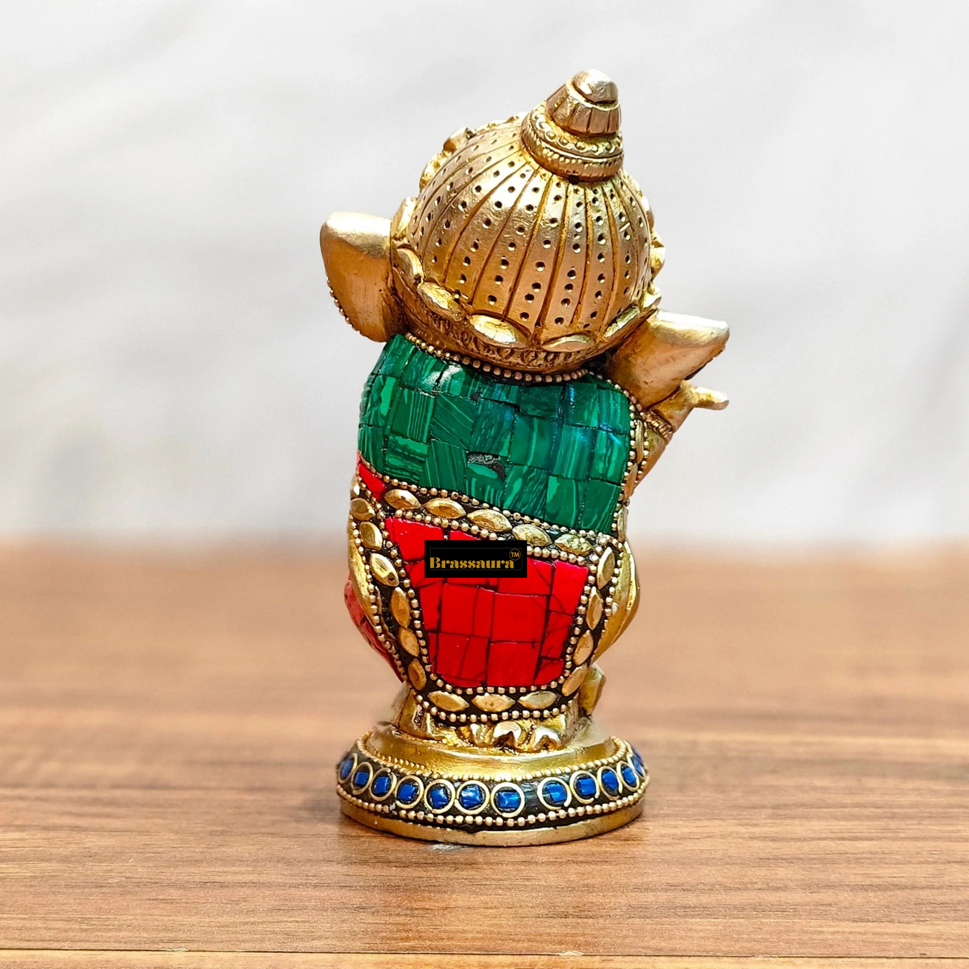 Brassaura™ Mini Brass Ganesha Idol – Height 5 Inches, Weight 1 Kg