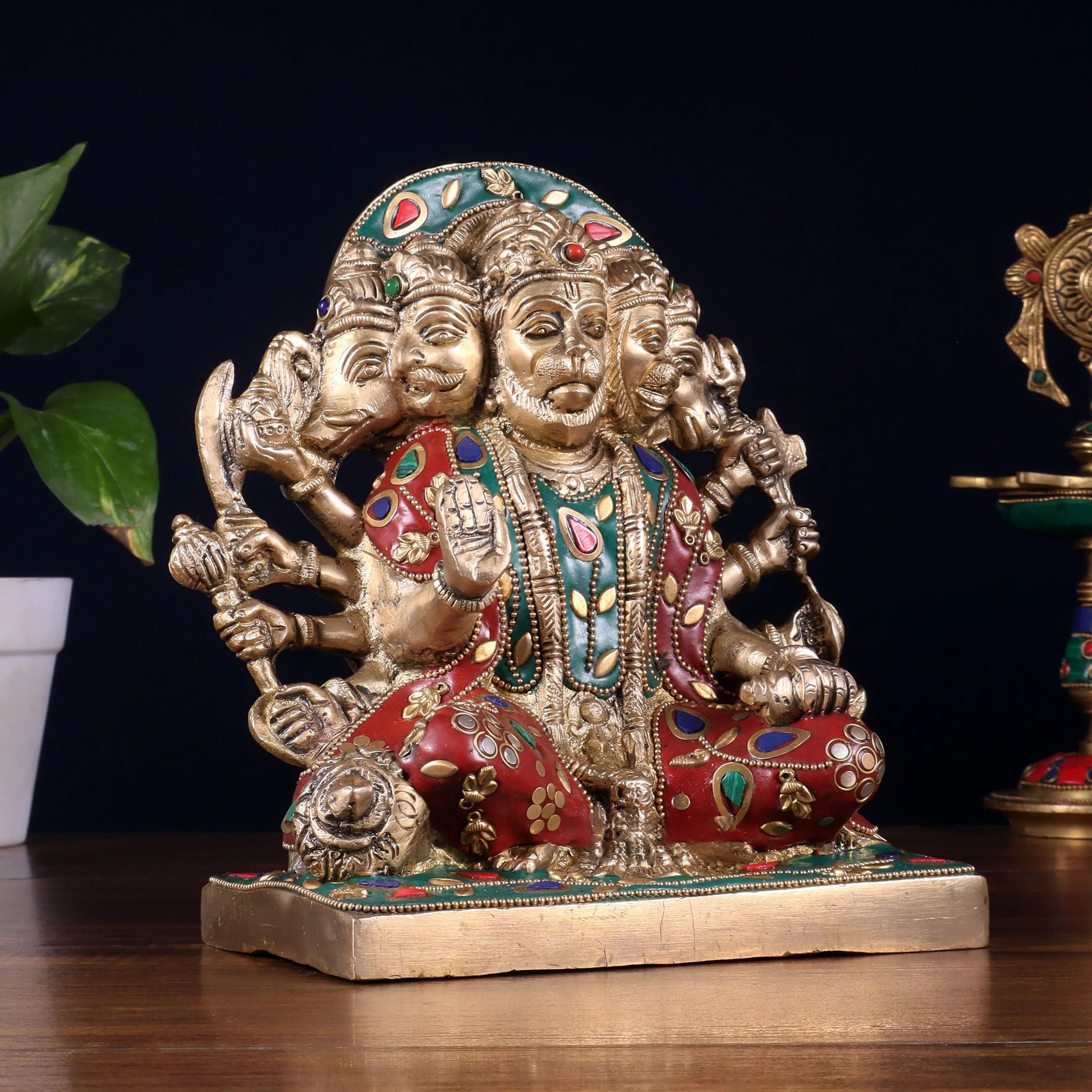 Brassaura™ Panchmukhi Hanuman Statue | Pure Brass with Intricate Detailing | Height 7.5 Inches & Weight 3.7 Kgs