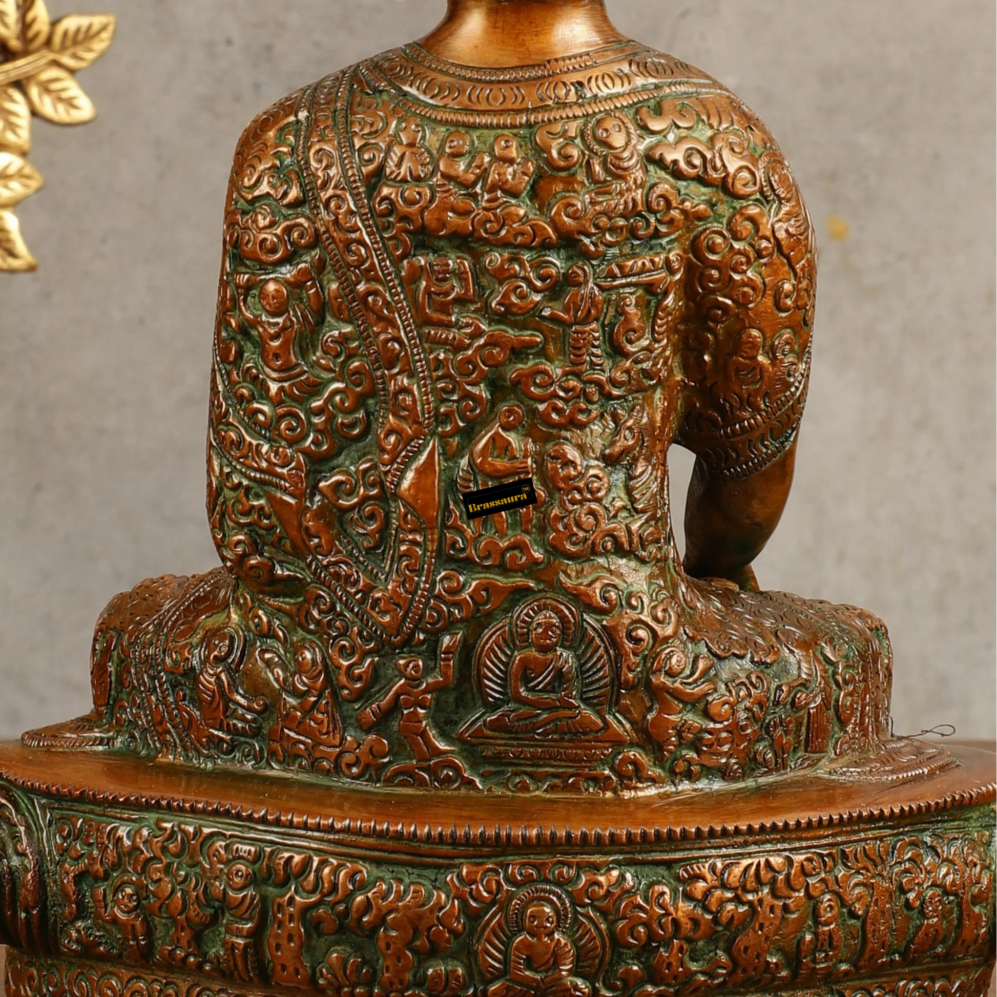 Brassaura™ Pure Brass Buddha Bhumisparsha Engraved Statue in Dual Tone – Height 9 Inches, Weight 2.73 Kgs