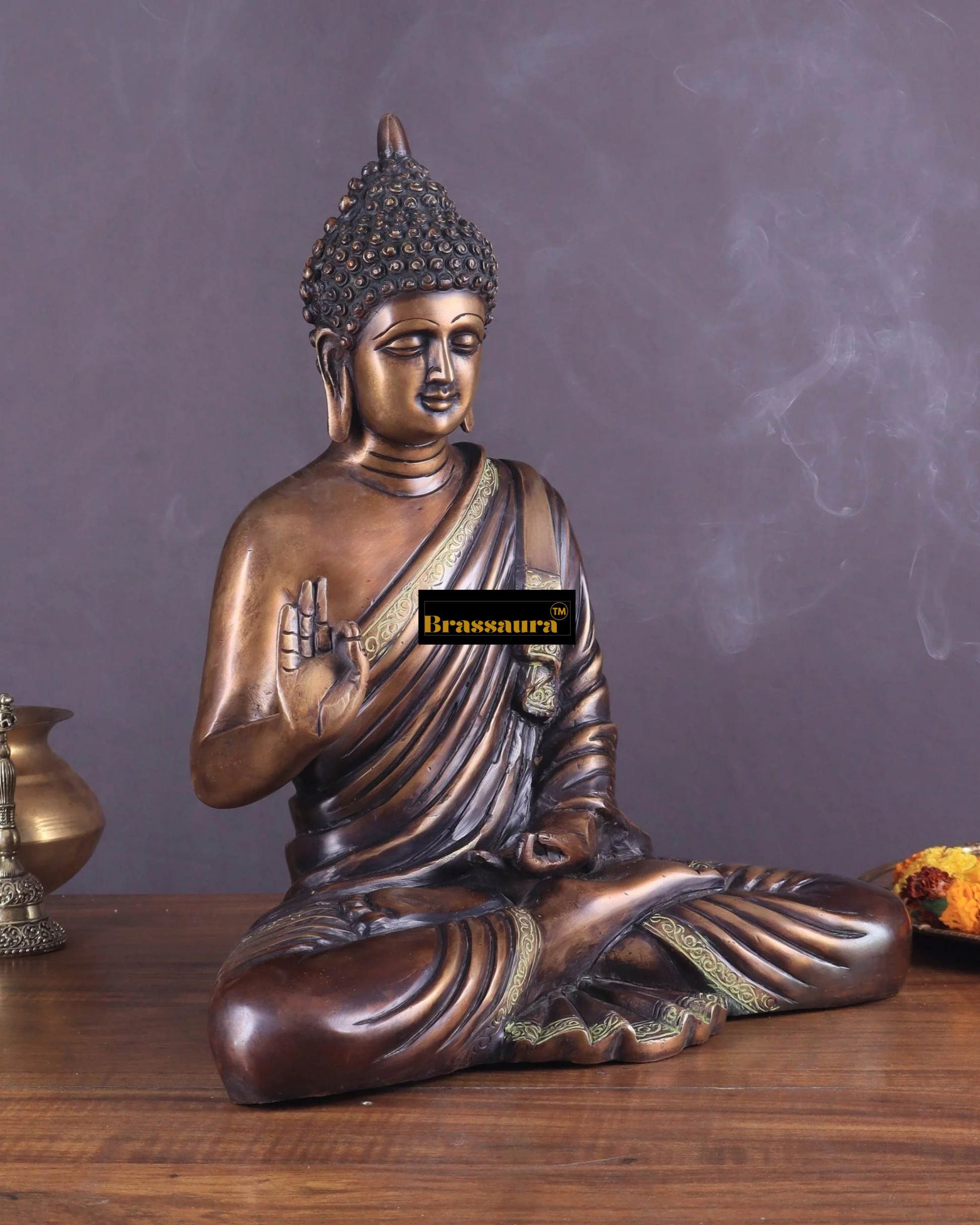 Brassaura™ Pure Brass Buddha Idol – Height 15 Inches, Weight 7.8 Kgs