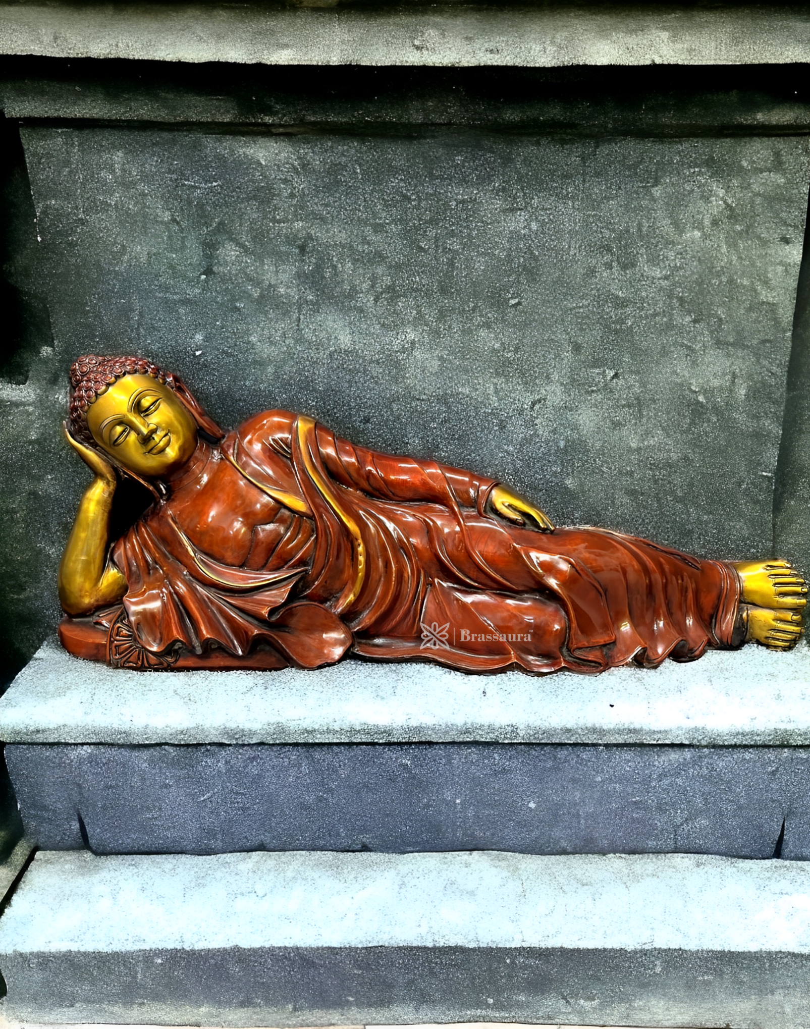 Brassaura™ Large Pure Brass Superfine Sleeping Buddha – Height 20 Inches & Weight 62 Kgs