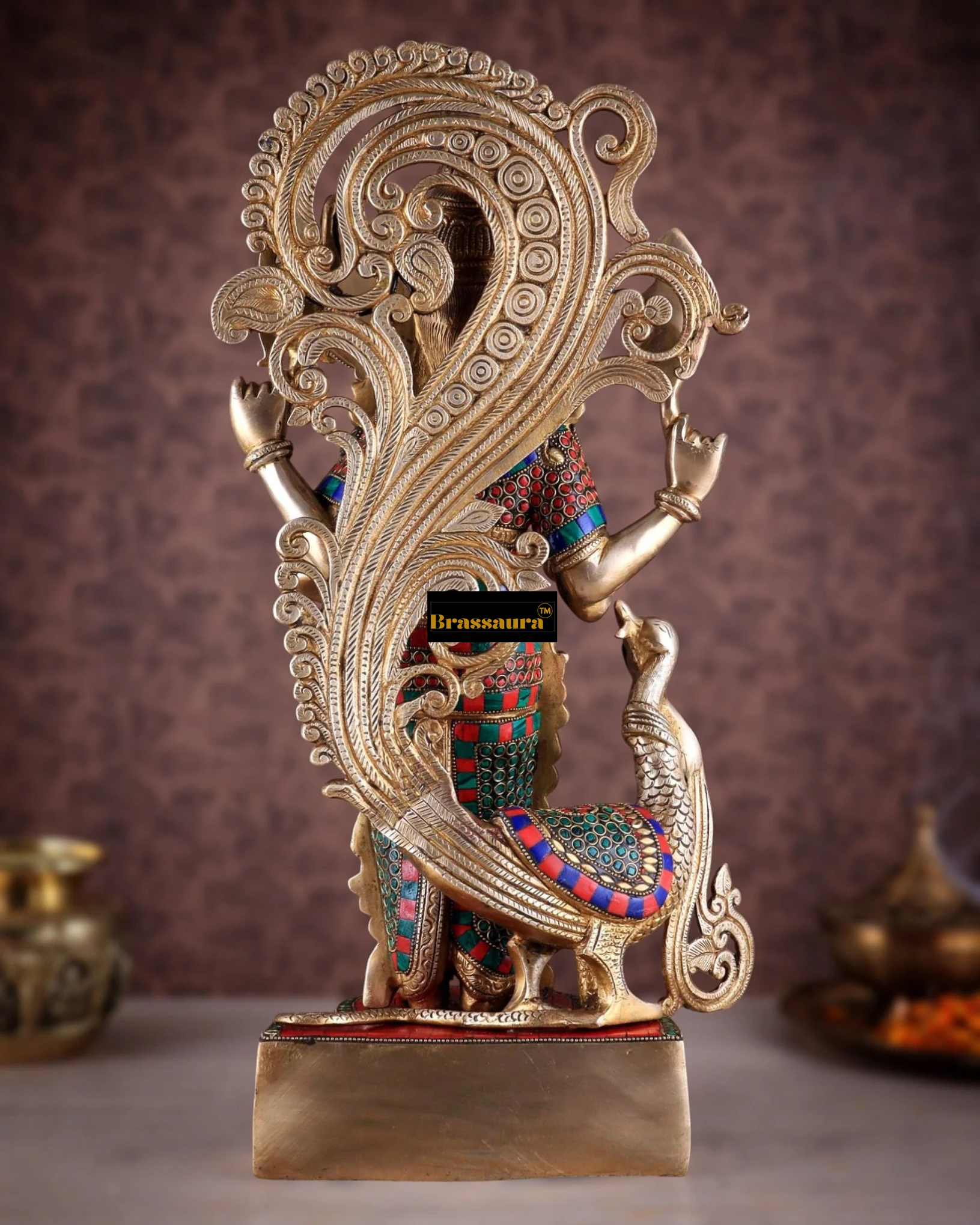 Brassaura™ Handcrafted Lord Murugan Statue in Superfine Brass – 20 Inches Height, 14 Kgs – With Peacock & Cobra