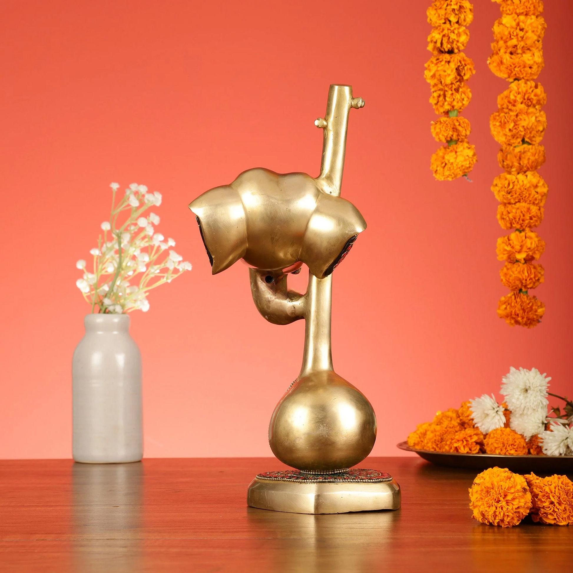 Brassaura™ Pure Brass Lord Ganesha with Sitar & Veena Idol | Superfine Handcrafted Showpiece | Weight 3.7 Kgs | Height 12 Inches