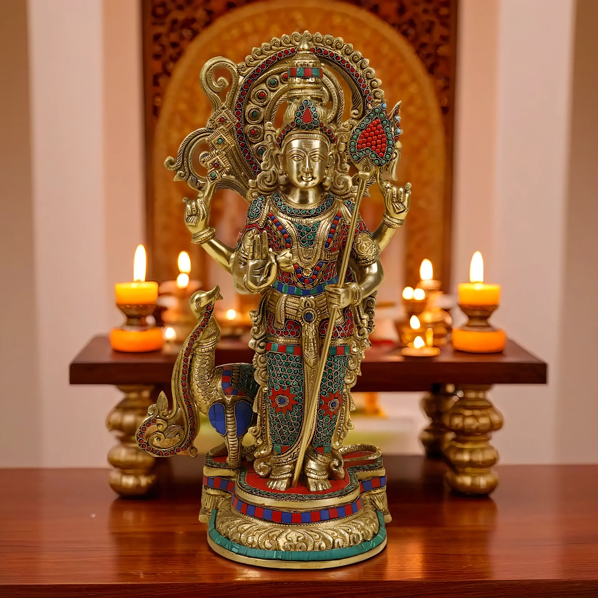 Brassaura™ Kartikeya Murugan Statue – 20 Inches Height, 13.85 Kgs – Exquisite Brass Idol