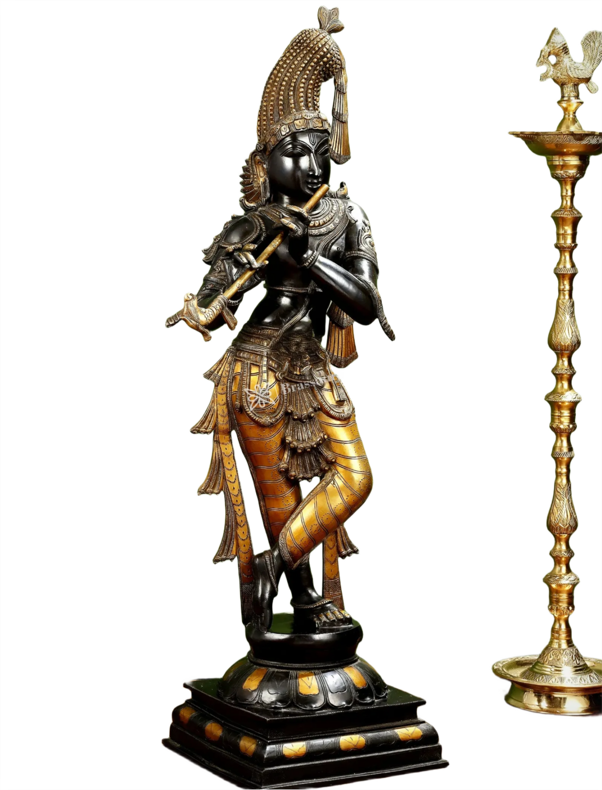 Brassaura™ Superfine Brass Krishna Murlidhar Idol – Height 36 Inches & Weight 27 Kgs | Black Antique Finish