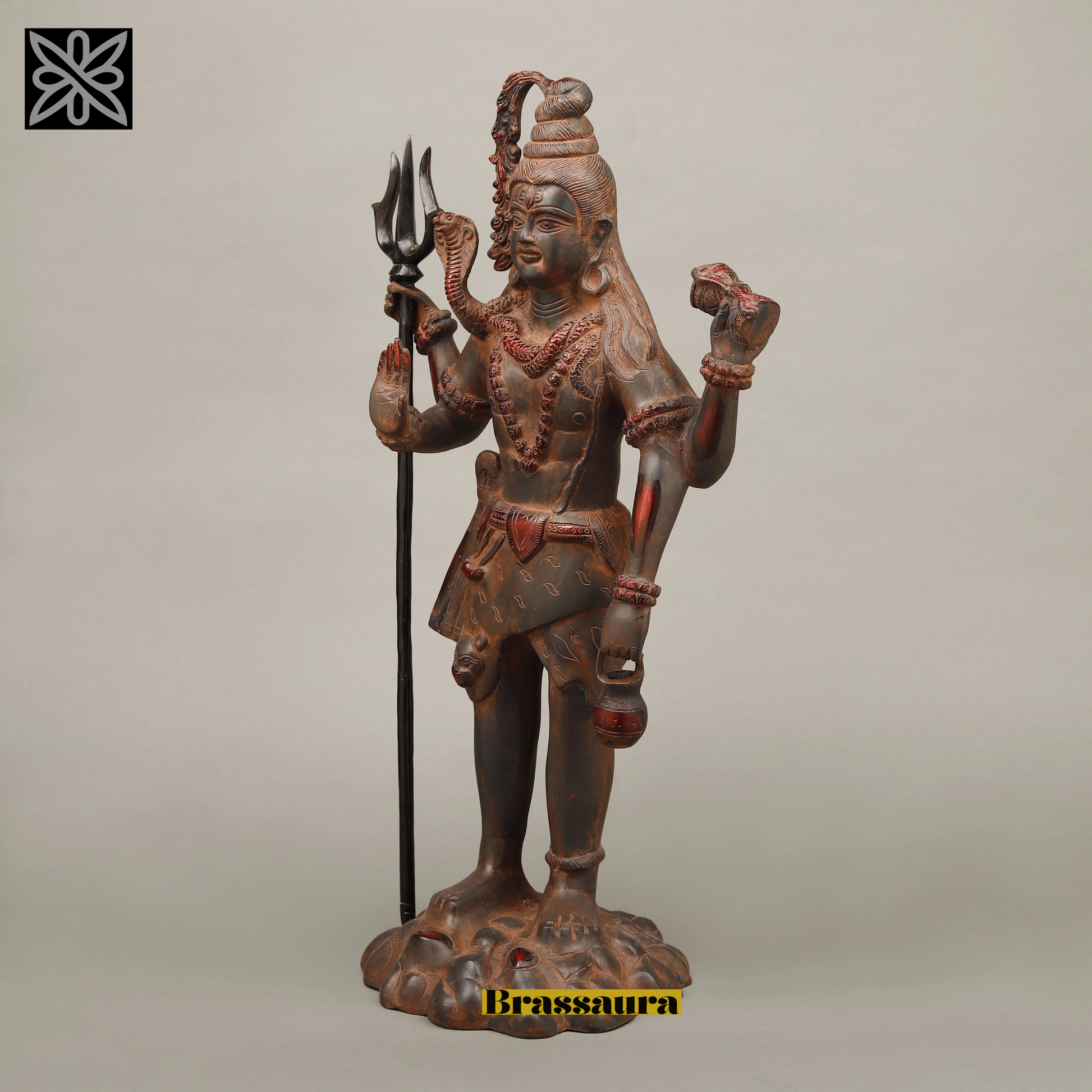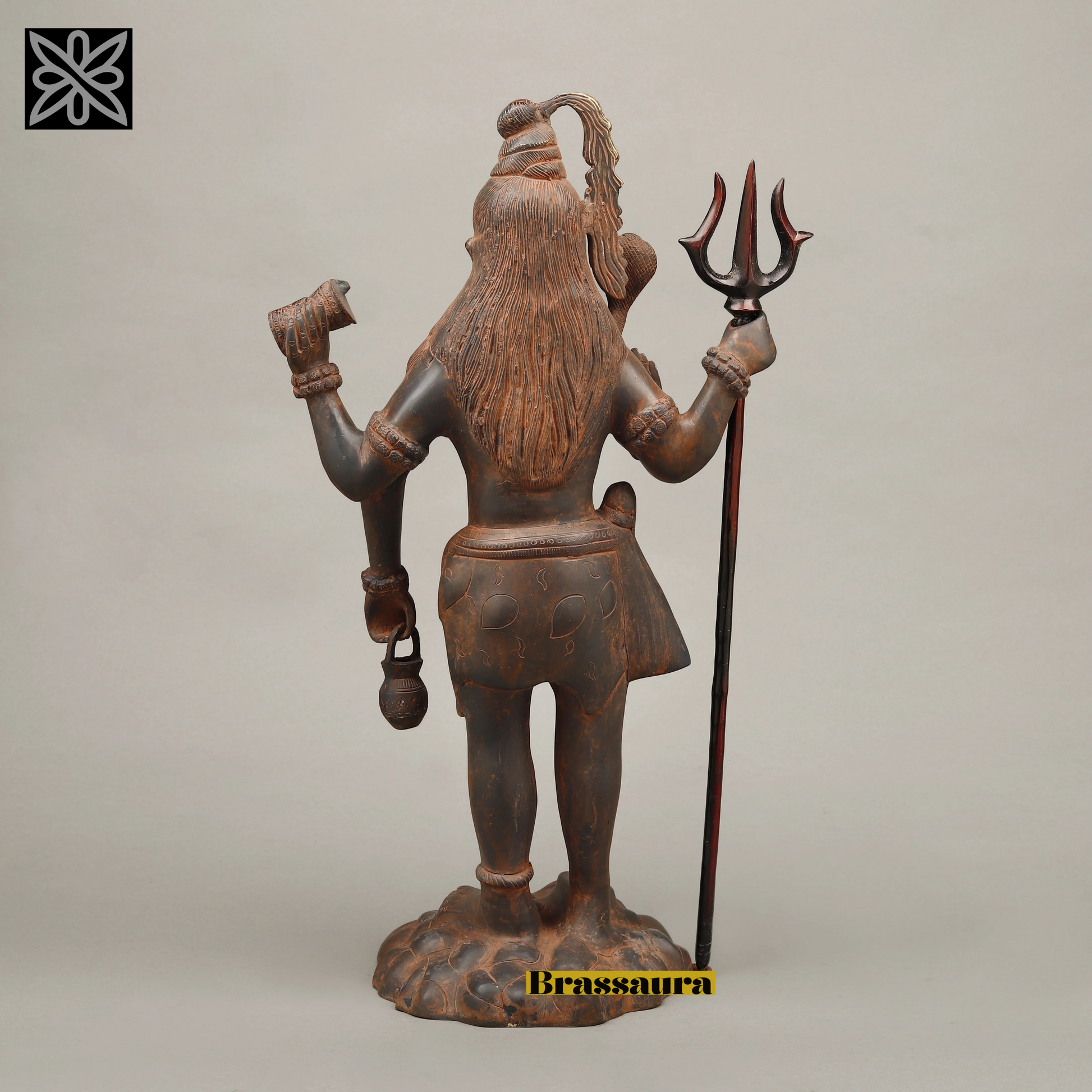 Brassaura™ Pure Brass Standing Shiva Idol – 23 Inch Height, 12.450 Kg Weight – Handcrafted Majestic Statue