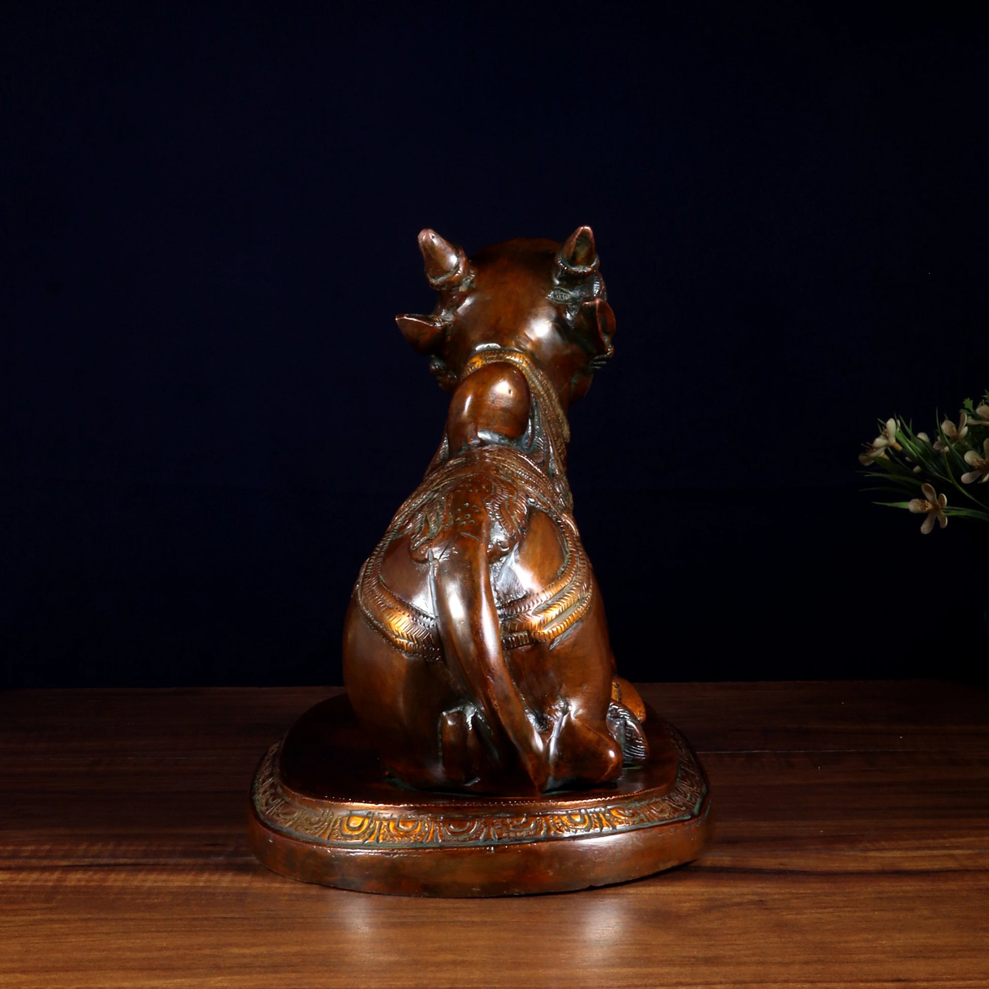 Nandi, the sacred bull, symbolizes faith and devotion. This vintage-inspired brass idol by Brassaura™ reflects the elegance of South Indian temple art. Measuring 9.5 inches tall, 12.6 inches wide, and 7.2 inches deep, and weighing 7 kgs, it is a timeless addition to your home temple, décor, or collection.