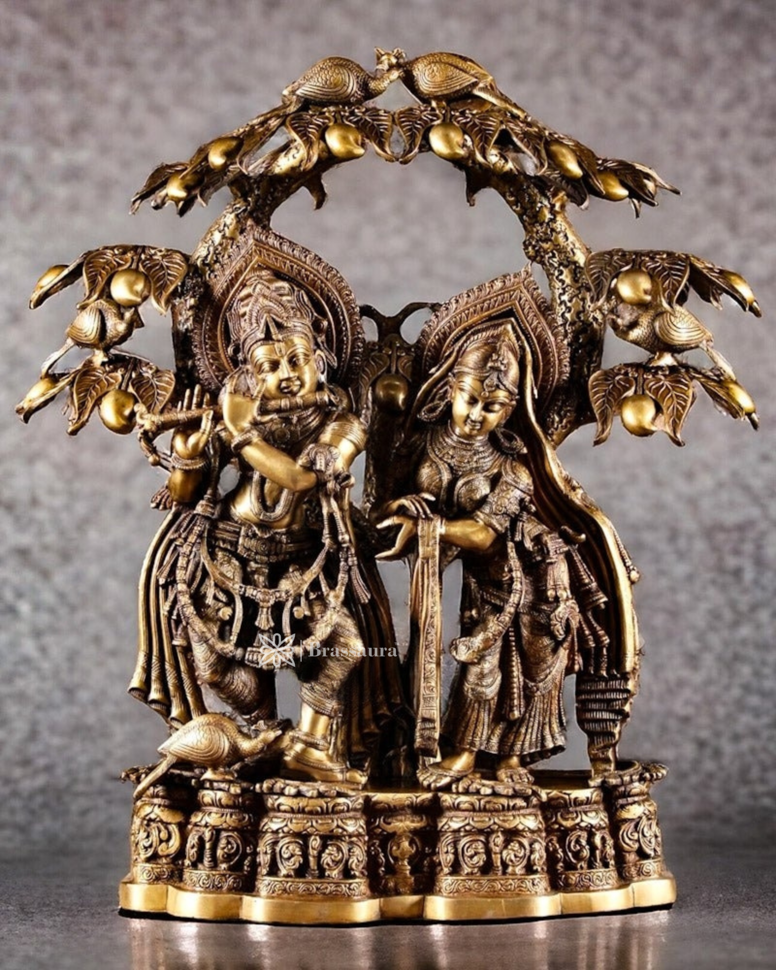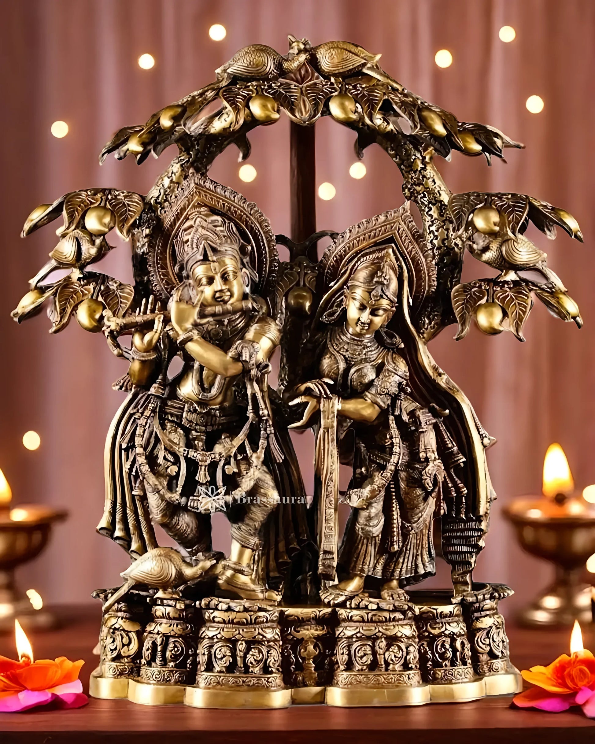 Brassaura™ Large Pure Brass Radha Krishna Under Tree Sculpture – Height 30 Inches & Weight 55.2 Kgs | Spiritual Art Idol