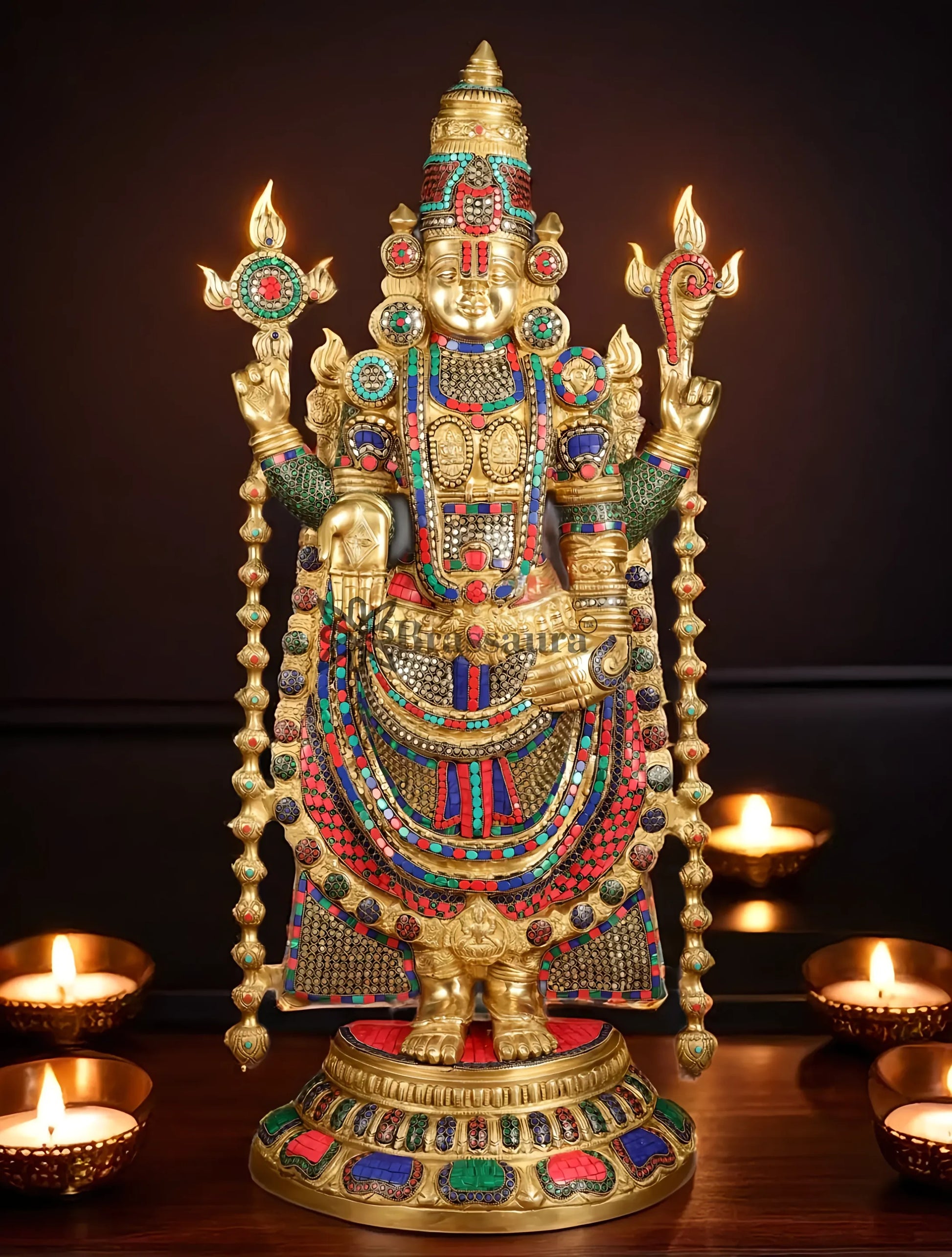 Brassaura™ Brass Lord Venkateshwara Idol with Stonework – 38 Inches, 37 Kgs