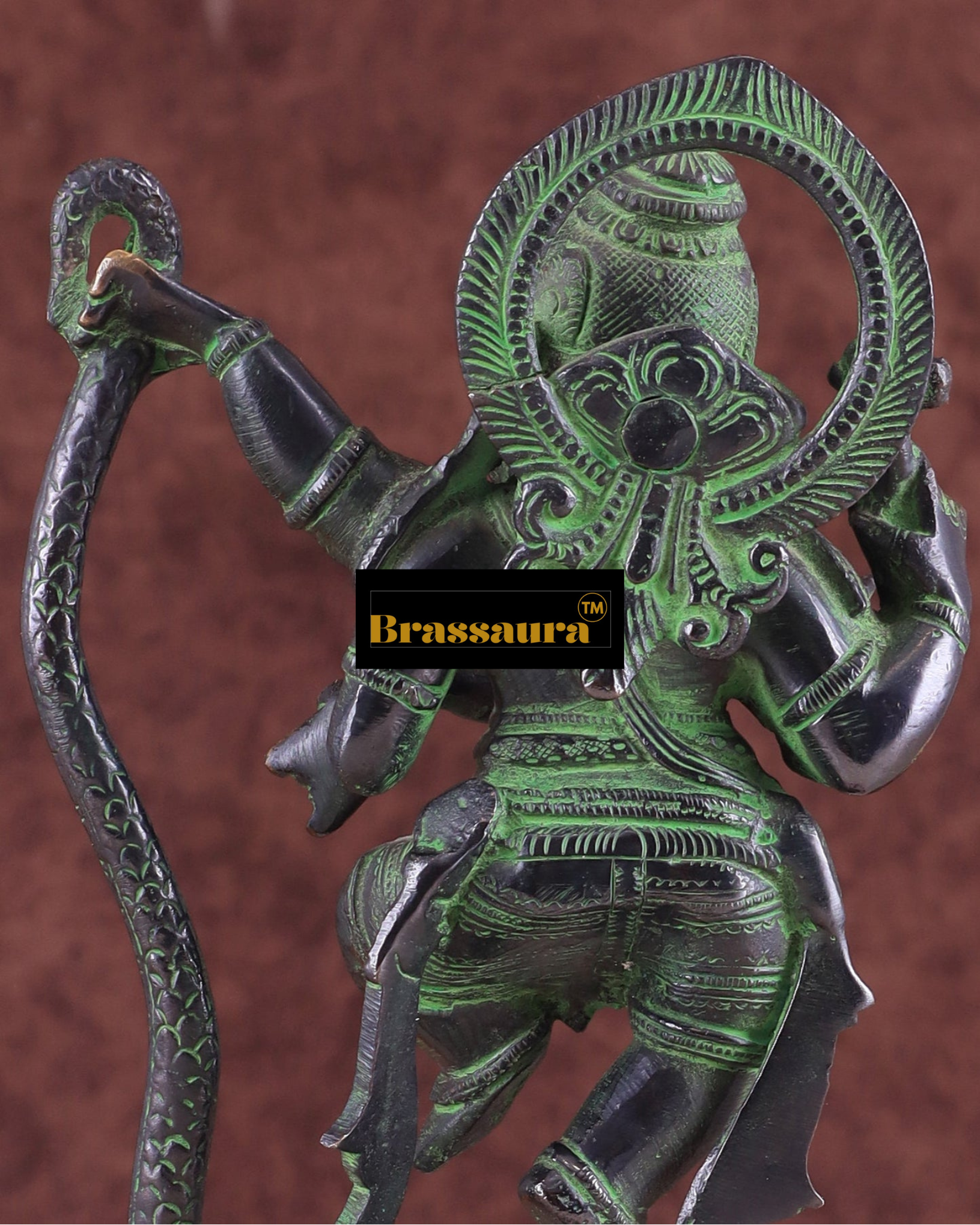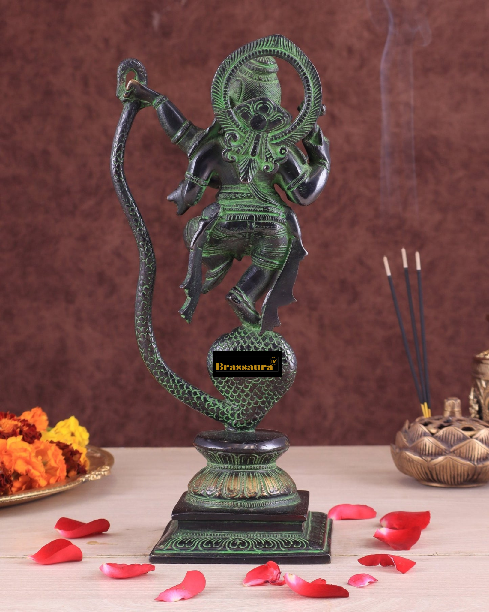 Brassaura™ Brass Dancing on Snake Lord Ganesha Statue – 11.5" Height, 3.25 kg – Unique Antique Black & Green Finish
