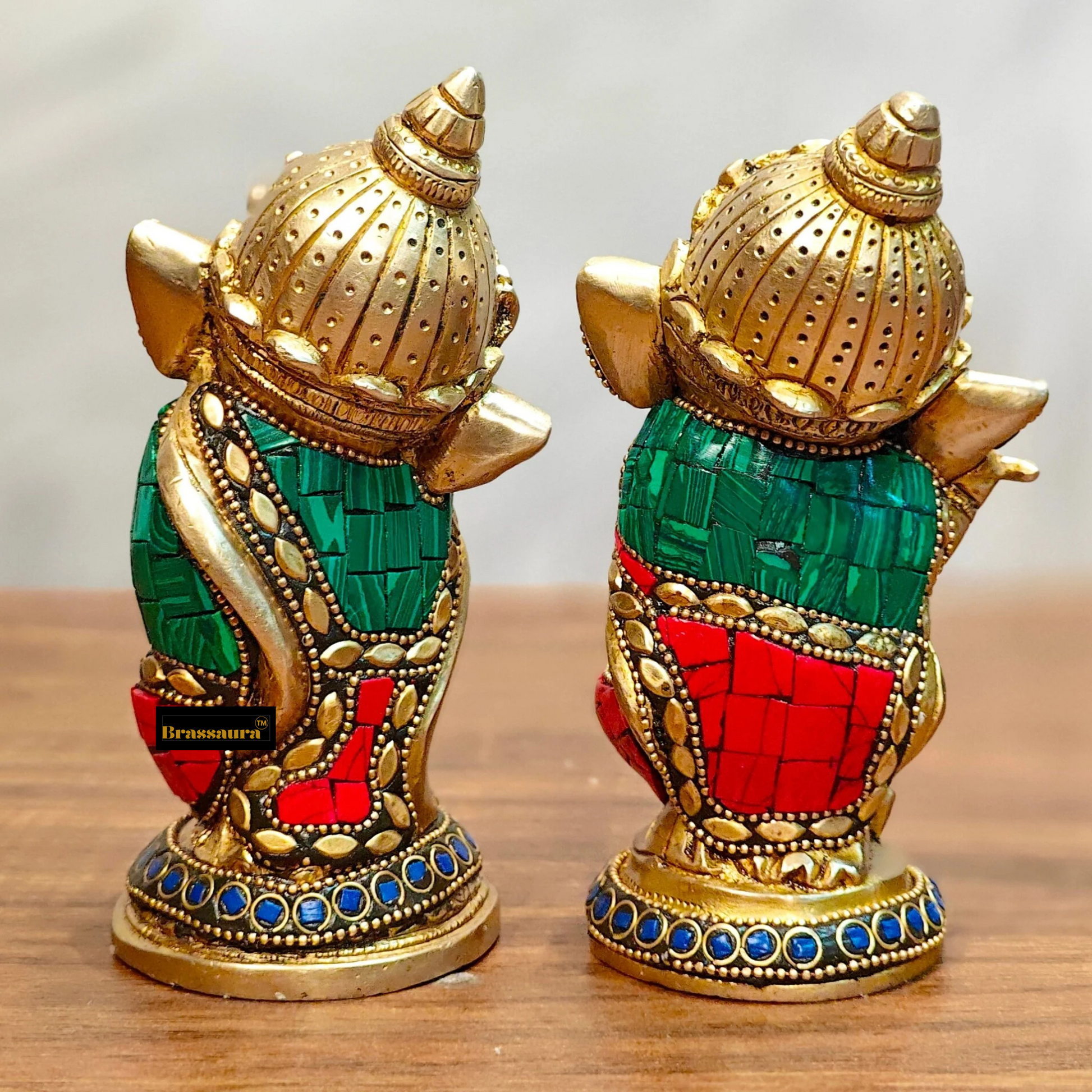 Brassaura™ Set of Baby Brass Ganesha Idols – Height 5 Inches, Total Weight 2.5 Kgs