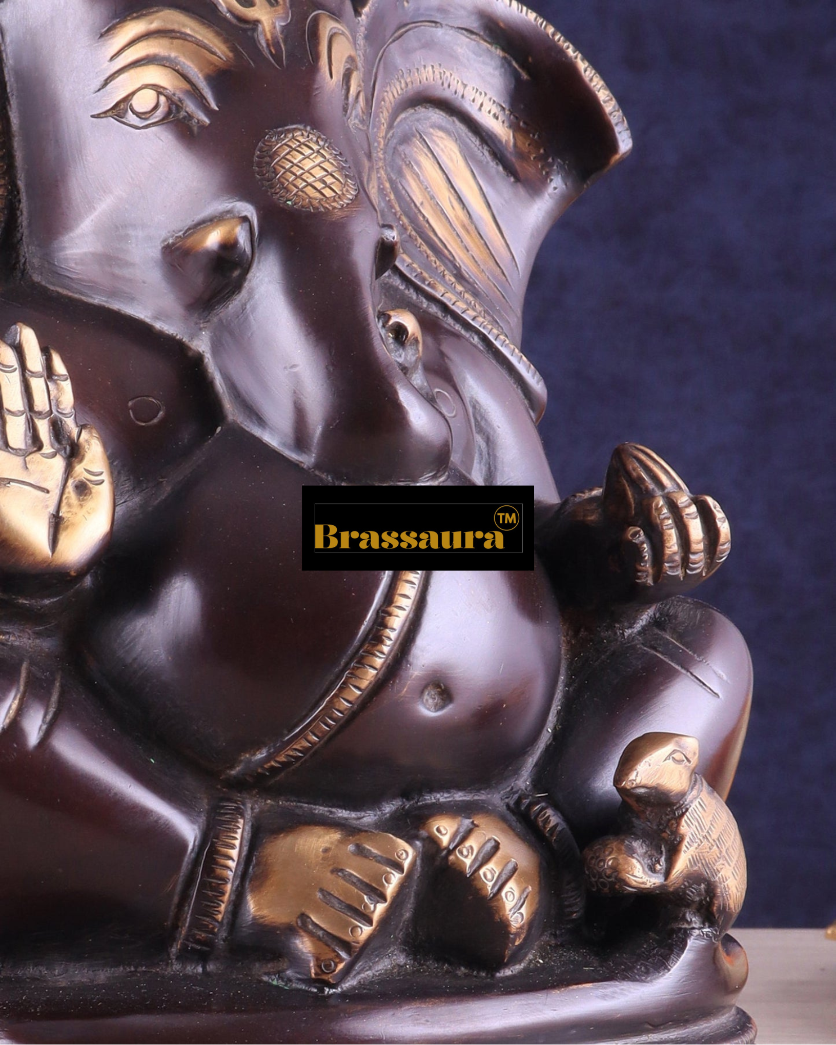 Invite blessings and elegance into your sacred spaces with this exquisite Brassaura™ Ganesha idol.