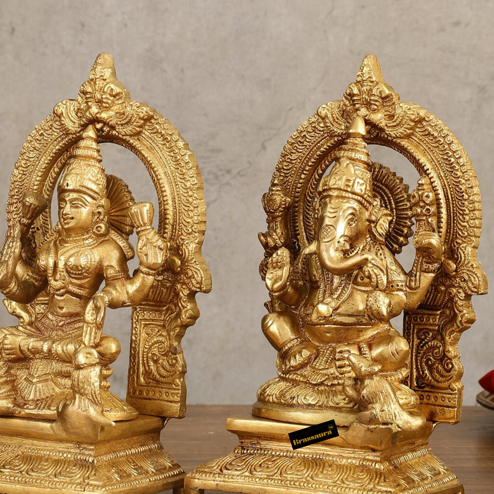 Brassaura™ Pure Brass Ganesha & Goddess Lakshmi Idol Set | Ganesha 7" H | Lakshmi 7.5" H | Total Weight 5 Kg | Spiritual Decor