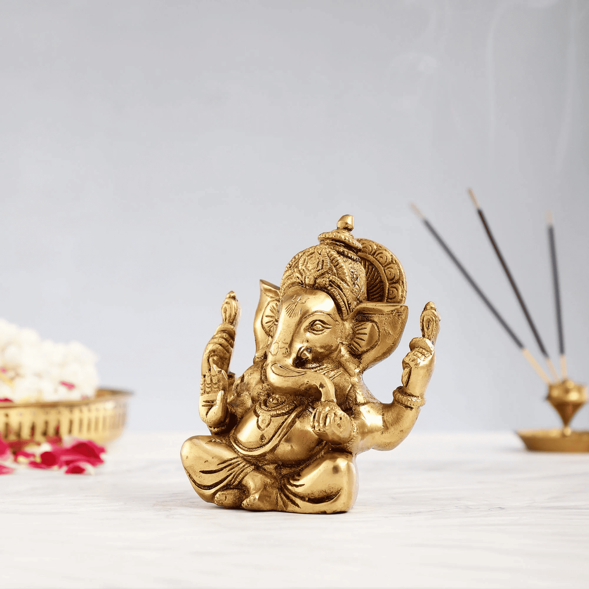 Brassaura™ Pure Brass Lord Ganesha Idol with Golden Finish | Height 6 Inches & Weight 1 Kg