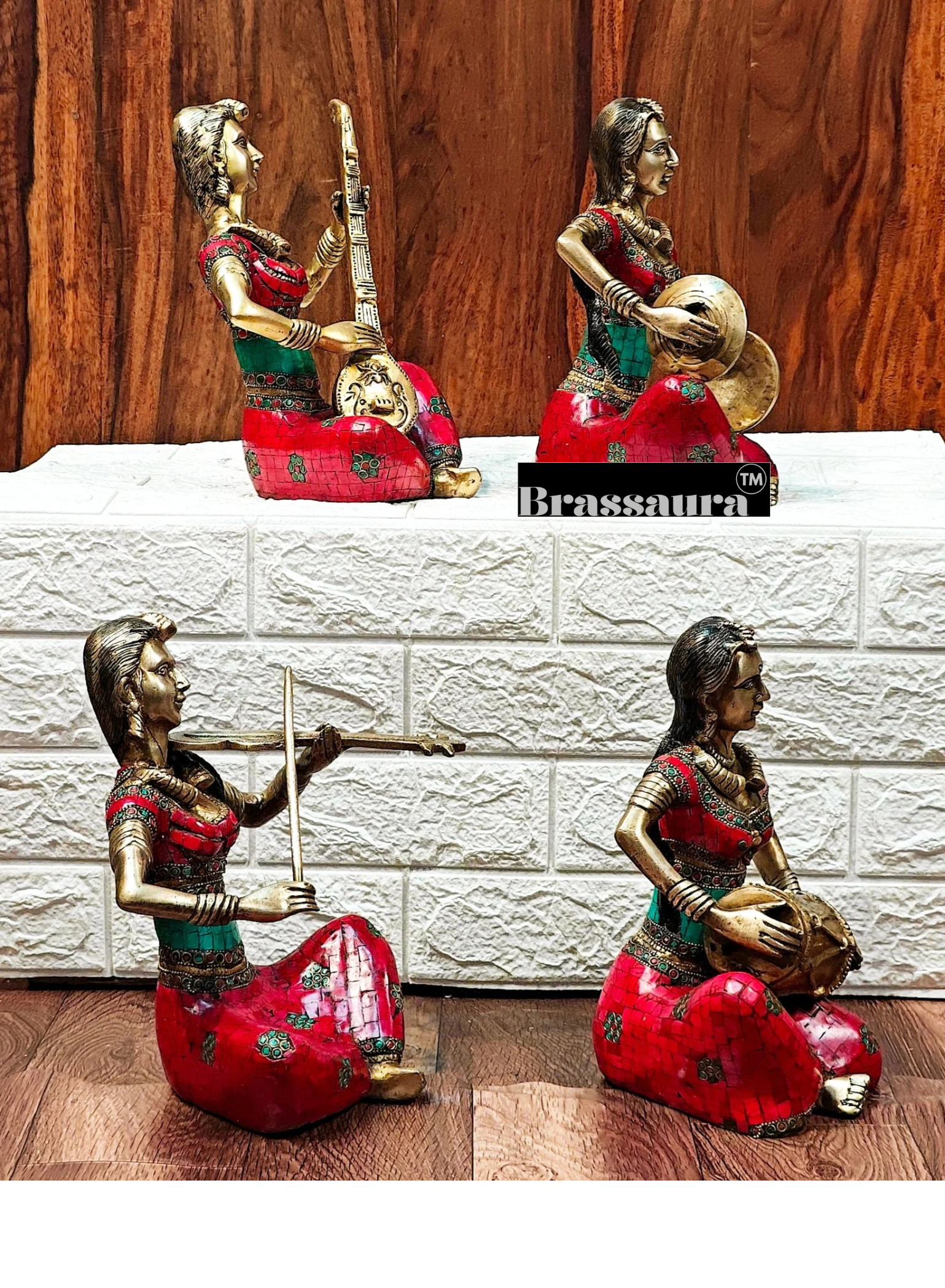 Brassaura™ Brass Tribal Lady Musicians Set – Height 11 Inches Each & Total Weight 21 Kgs (Set of 4)