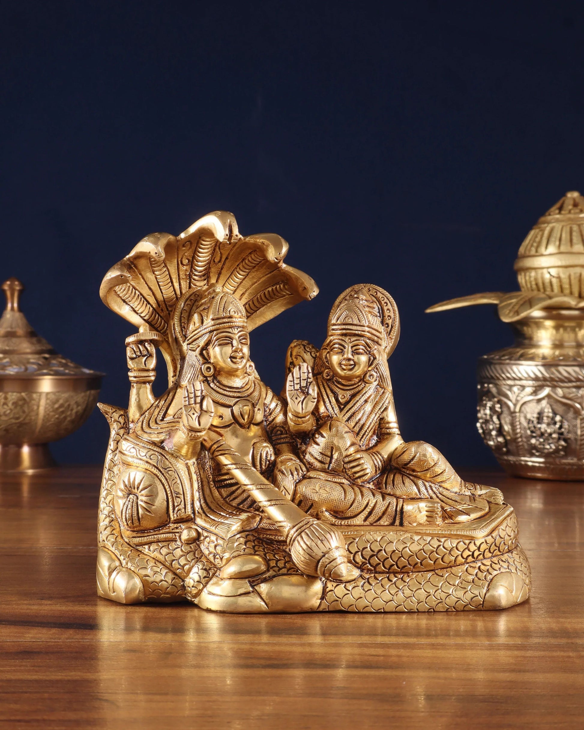 Brassaura™ Vishnu-Lakshmi Brass Statue on Sheshnag – 2.3kg, 6.5-Inch – Divine Blessings for Home Temple & Spiritual Decor