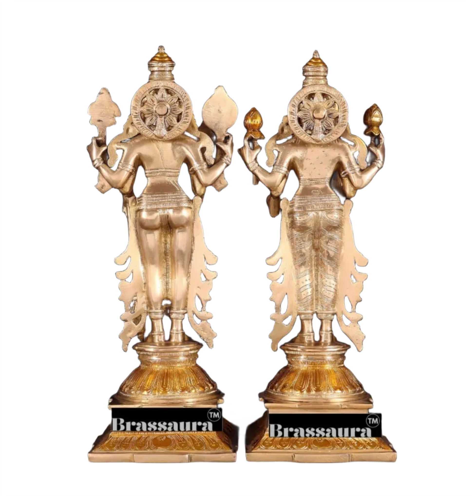 Brassaura™ Pure Brass Standing Vishnu Idol Set – 9.5kg, 14-Inch – Chola-Style Lord Vishnu, Lakshmi with Elephant & Garuda in Dual-Tone Gold Finish