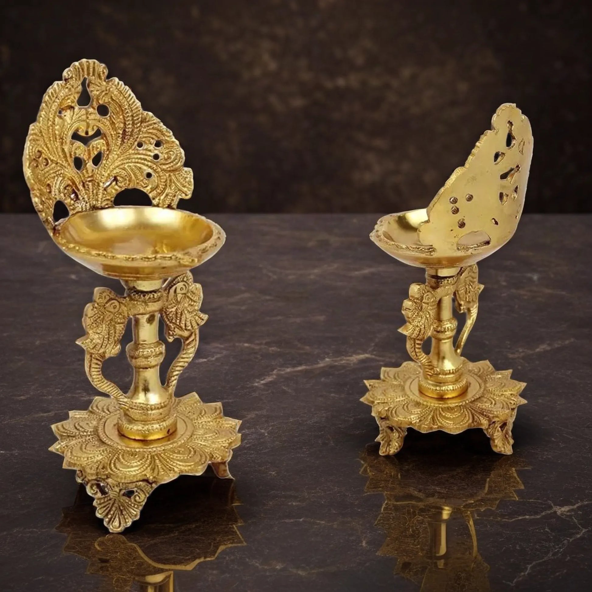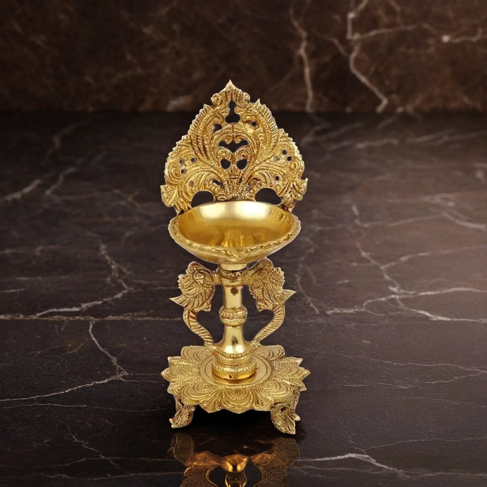 Traditional and spiritually elevating, this Brass Oil Lamp Diya (Deepam) is a timeless symbol of divine light and devotion. Weighing 1.28 kg and standing 9 inches tall, it is handcrafted from solid brass and designed for daily use in home temples or pooja rituals.