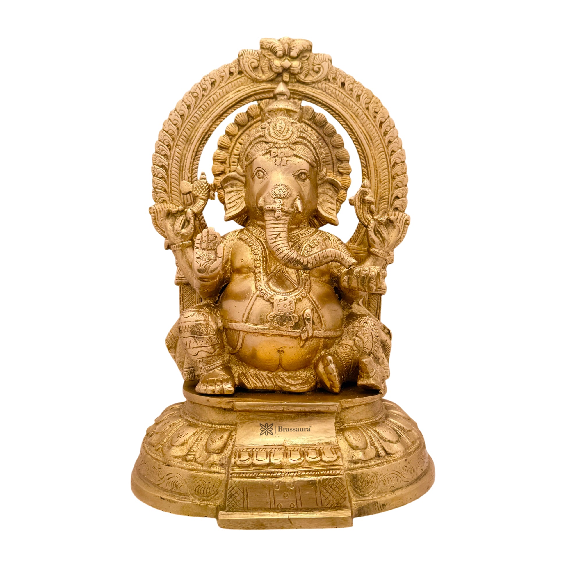 Brassaura™ Brass Ganesha Sitting on Singhasan – Height 12.99 inches | Weight 5.3 kgs