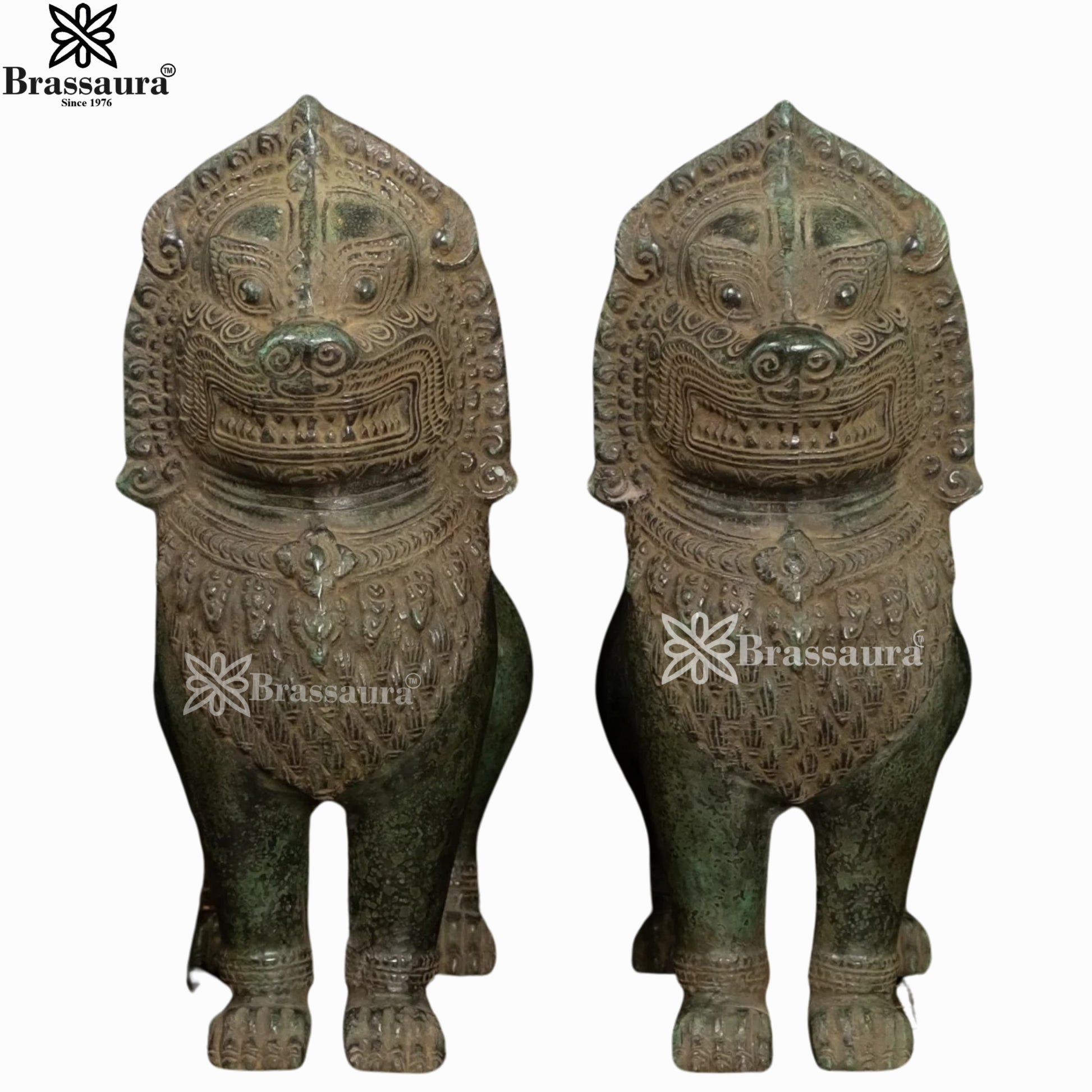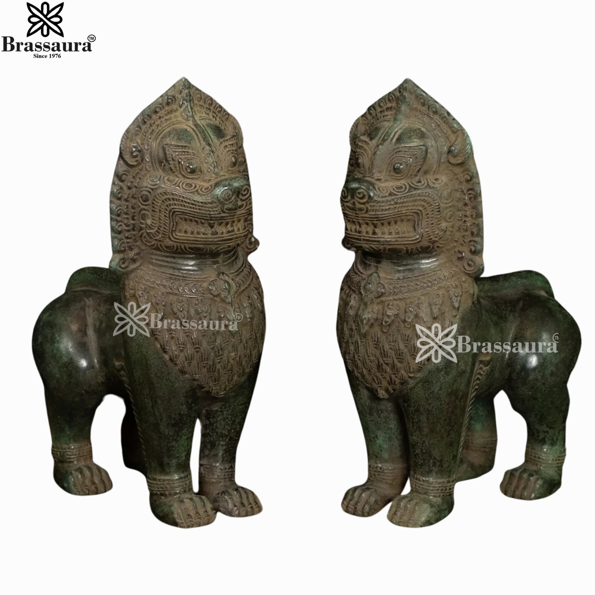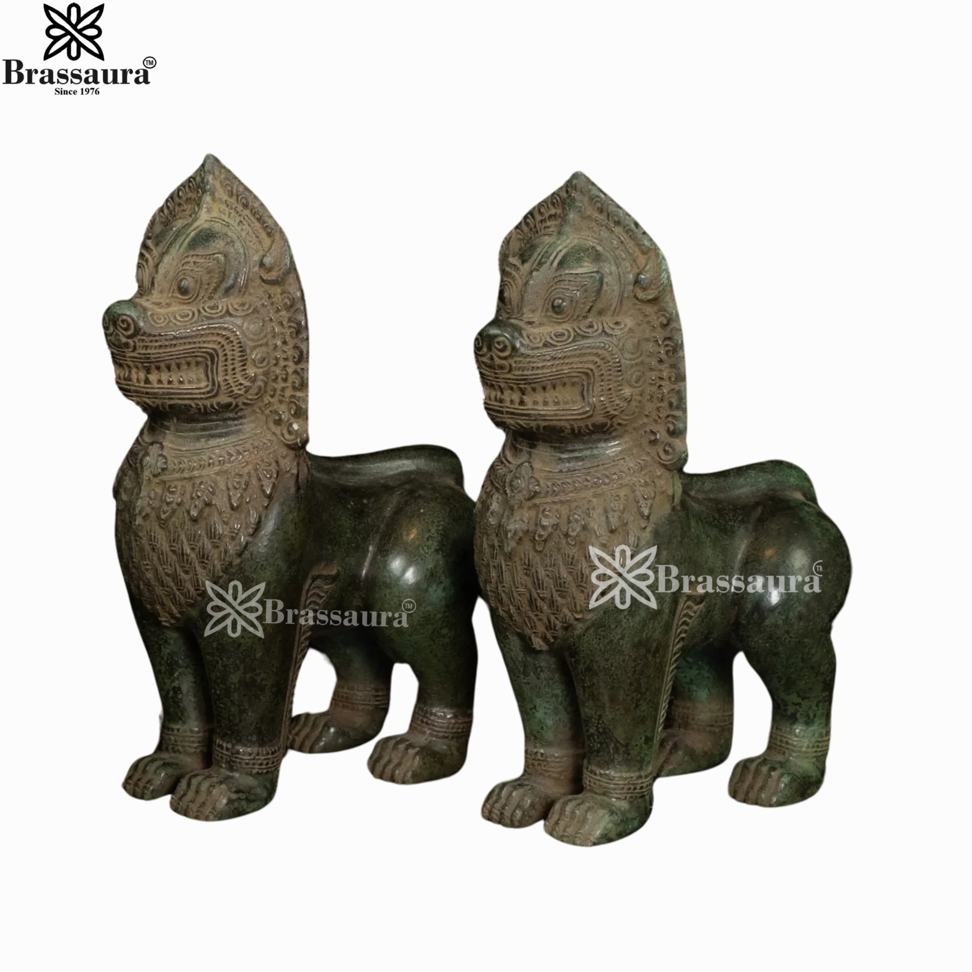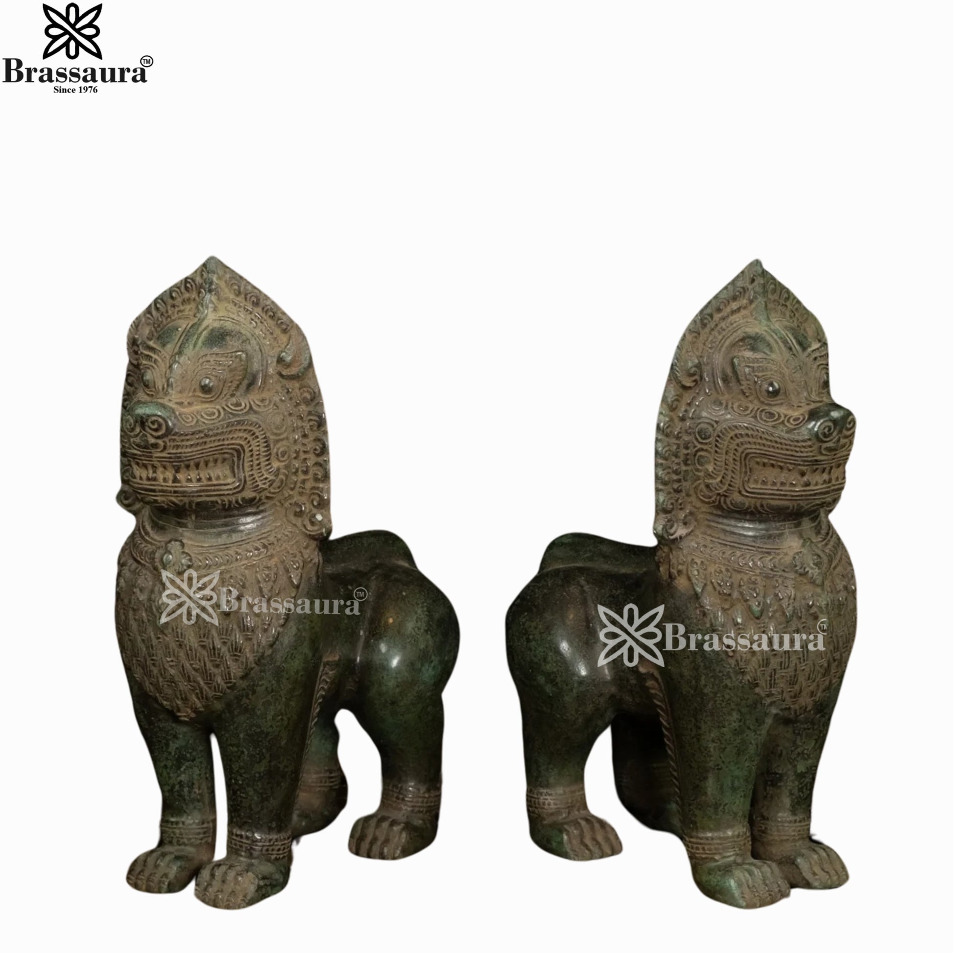 Bronze Balinese Temple Lion Idol For Home Decor Weight 2.8 Kg And Height 11 Inch